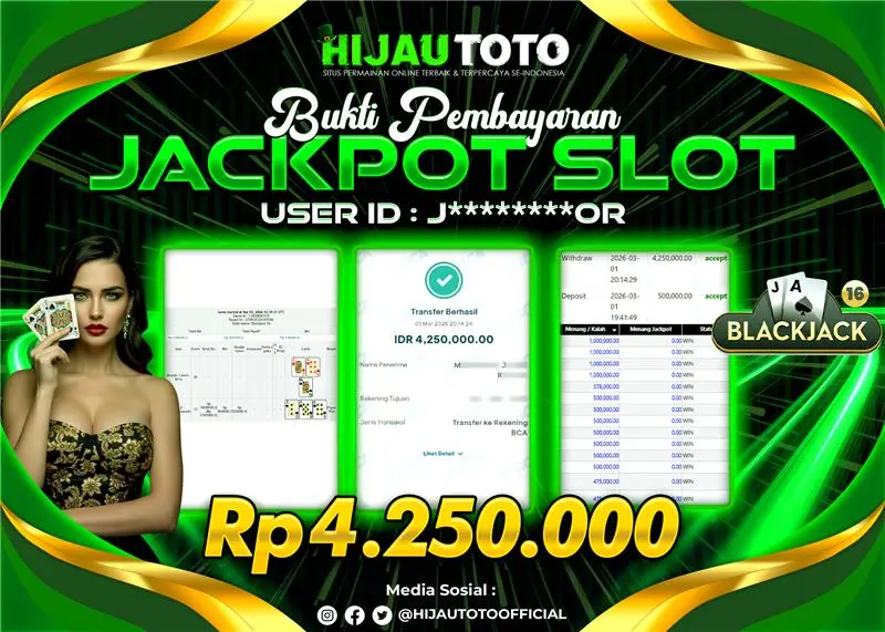 Selamat datang di HIJAUTOTO, tempatnya seru-seruan dan cuan besar! Mulai main cukup dengan modal Rp5.000 aja, taruhan super murah dari Rp100 perak! Mau main slot yang penuh warna? Atau togel dari 20 pasaran paling hits? Atau mungkin tembak ikan yang bikin deg-degan? Tenang, ada juga taruhan bola, sabung ayam, dan live casino yang bikin suasana makin hidup! Daftar sekarang dan dapetin bonus new member 100% langsung, biar modalmu makin tebal. Deposit gampang banget, bisa pakai QRIS, dan kalau butuh bantuan, customer service kita siap 24 jam nonstop. Jadi, tunggu apa lagi? Yuk, gabung dan bawa pulang kemenangannya cuma di HIJAUTOTO!