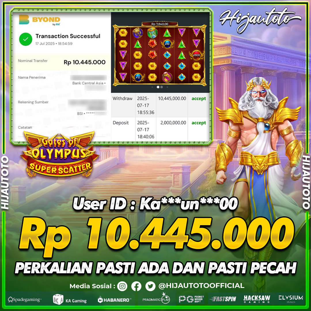 Selamat datang di HIJAUTOTO, tempatnya seru-seruan dan cuan besar! Mulai main cukup dengan modal Rp5.000 aja, taruhan super murah dari Rp100 perak! Mau main slot yang penuh warna? Atau togel dari 20 pasaran paling hits? Atau mungkin tembak ikan yang bikin deg-degan? Tenang, ada juga taruhan bola, sabung ayam, dan live casino yang bikin suasana makin hidup! Daftar sekarang dan dapetin bonus new member 100% langsung, biar modalmu makin tebal. Deposit gampang banget, bisa pakai QRIS, dan kalau butuh bantuan, customer service kita siap 24 jam nonstop. Jadi, tunggu apa lagi? Yuk, gabung dan bawa pulang kemenangannya cuma di HIJAUTOTO!