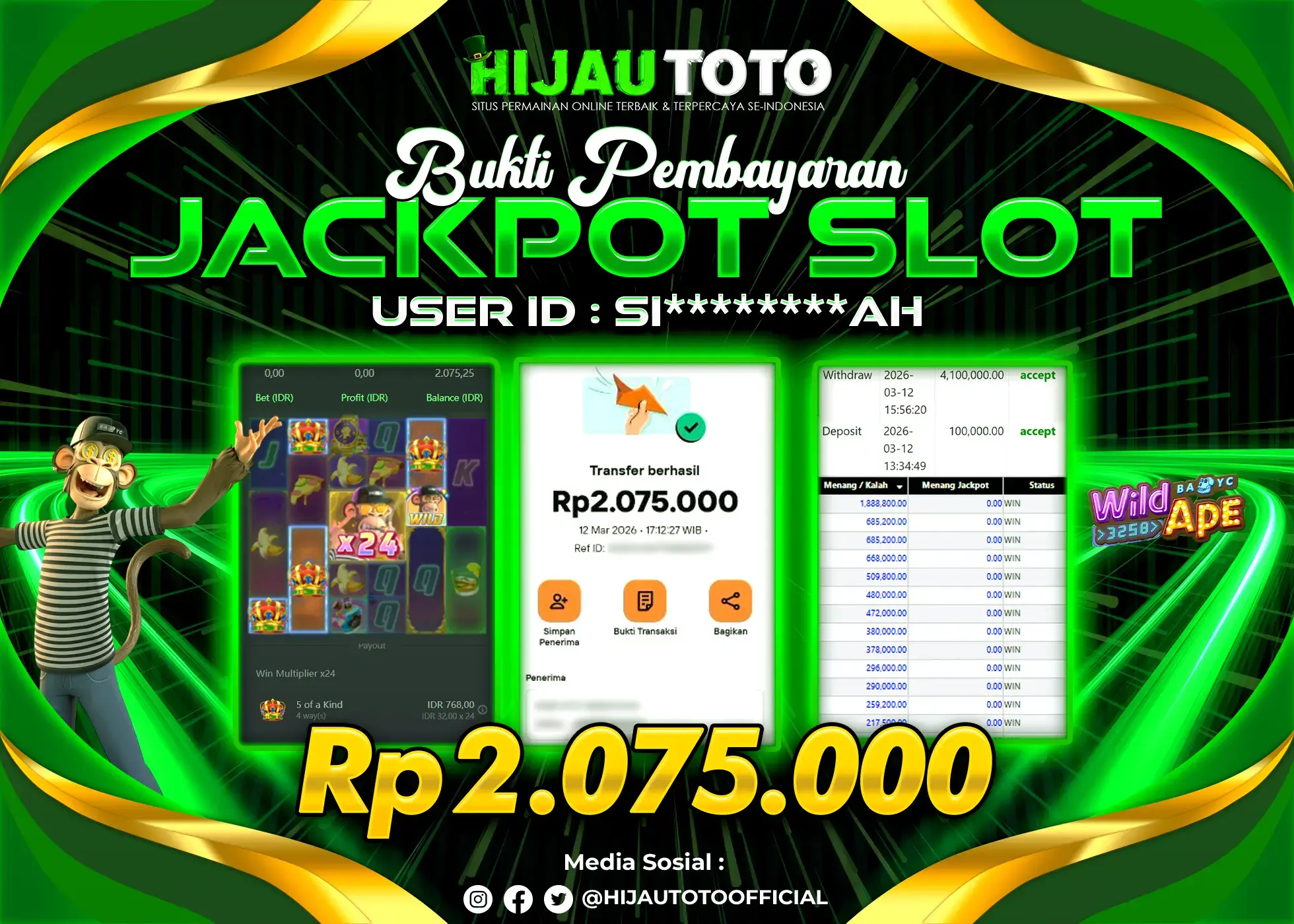 Selamat datang di HIJAUTOTO, tempatnya seru-seruan dan cuan besar! Mulai main cukup dengan modal Rp5.000 aja, taruhan super murah dari Rp100 perak! Mau main slot yang penuh warna? Atau togel dari 20 pasaran paling hits? Atau mungkin tembak ikan yang bikin deg-degan? Tenang, ada juga taruhan bola, sabung ayam, dan live casino yang bikin suasana makin hidup! Daftar sekarang dan dapetin bonus new member 100% langsung, biar modalmu makin tebal. Deposit gampang banget, bisa pakai QRIS, dan kalau butuh bantuan, customer service kita siap 24 jam nonstop. Jadi, tunggu apa lagi? Yuk, gabung dan bawa pulang kemenangannya cuma di HIJAUTOTO!