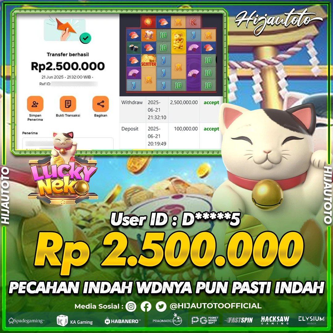 Selamat Kepada Member HIJAUTOTO D*****S Telah Jackpot Di SLOT LUCKY NEKO