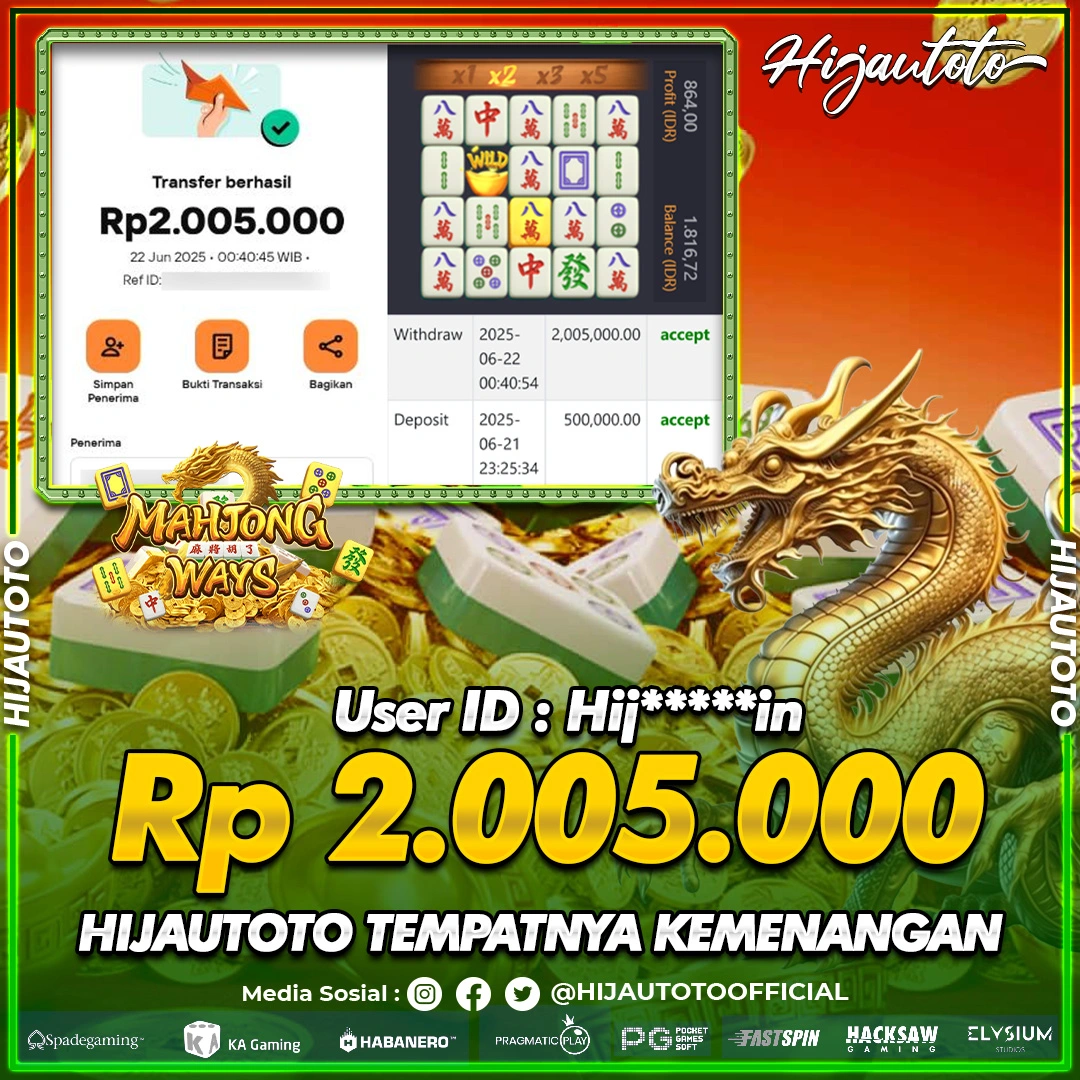 Selamat datang di HIJAUTOTO, tempatnya seru-seruan dan cuan besar! Mulai main cukup dengan modal Rp5.000 aja, taruhan super murah dari Rp100 perak! Mau main slot yang penuh warna? Atau togel dari 20 pasaran paling hits? Atau mungkin tembak ikan yang bikin deg-degan? Tenang, ada juga taruhan bola, sabung ayam, dan live casino yang bikin suasana makin hidup! Daftar sekarang dan dapetin bonus new member 100% langsung, biar modalmu makin tebal. Deposit gampang banget, bisa pakai QRIS, dan kalau butuh bantuan, customer service kita siap 24 jam nonstop. Jadi, tunggu apa lagi? Yuk, gabung dan bawa pulang kemenangannya cuma di HIJAUTOTO!