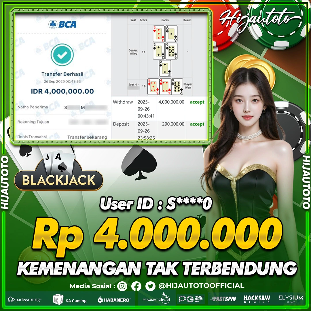 Selamat datang di HIJAUTOTO, tempatnya seru-seruan dan cuan besar! Mulai main cukup dengan modal Rp5.000 aja, taruhan super murah dari Rp100 perak! Mau main slot yang penuh warna? Atau togel dari 20 pasaran paling hits? Atau mungkin tembak ikan yang bikin deg-degan? Tenang, ada juga taruhan bola, sabung ayam, dan live casino yang bikin suasana makin hidup! Daftar sekarang dan dapetin bonus new member 100% langsung, biar modalmu makin tebal. Deposit gampang banget, bisa pakai QRIS, dan kalau butuh bantuan, customer service kita siap 24 jam nonstop. Jadi, tunggu apa lagi? Yuk, gabung dan bawa pulang kemenangannya cuma di HIJAUTOTO!