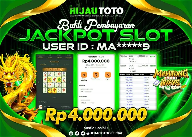 Selamat Kepada Member HIJAUTOTO MA*****9 Telah Jackpot Di SLOT MAHJONG WAYS