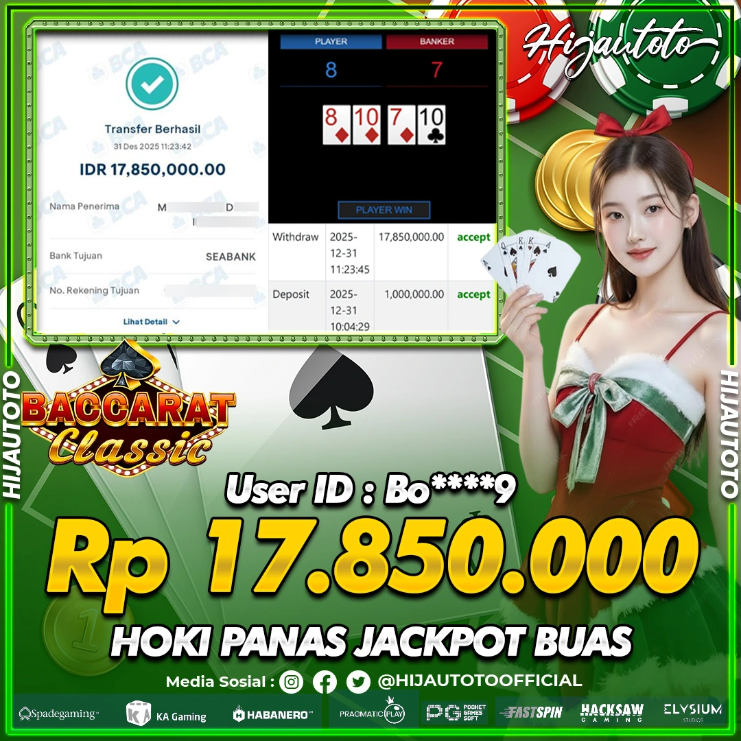 Selamat Kepada Member HIJAUTOTO BO****9 Telah Jackpot Di SLOT BACCARAT CLASSIC