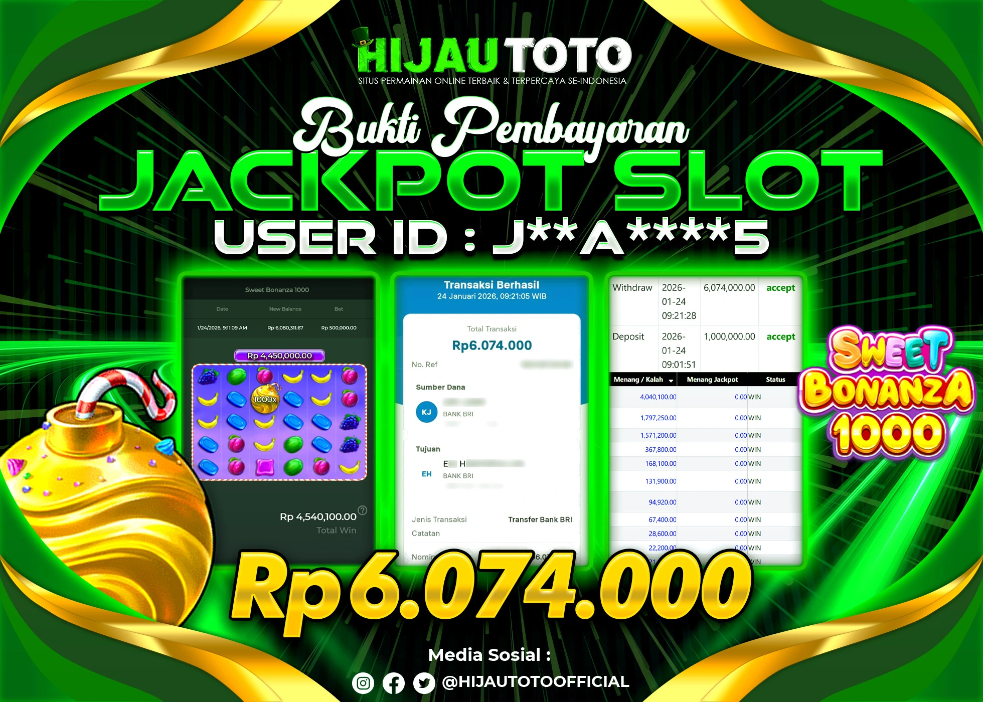 Selamat datang di HIJAUTOTO, tempatnya seru-seruan dan cuan besar! Mulai main cukup dengan modal Rp5.000 aja, taruhan super murah dari Rp100 perak! Mau main slot yang penuh warna? Atau togel dari 20 pasaran paling hits? Atau mungkin tembak ikan yang bikin deg-degan? Tenang, ada juga taruhan bola, sabung ayam, dan live casino yang bikin suasana makin hidup! Daftar sekarang dan dapetin bonus new member 100% langsung, biar modalmu makin tebal. Deposit gampang banget, bisa pakai QRIS, dan kalau butuh bantuan, customer service kita siap 24 jam nonstop. Jadi, tunggu apa lagi? Yuk, gabung dan bawa pulang kemenangannya cuma di HIJAUTOTO!