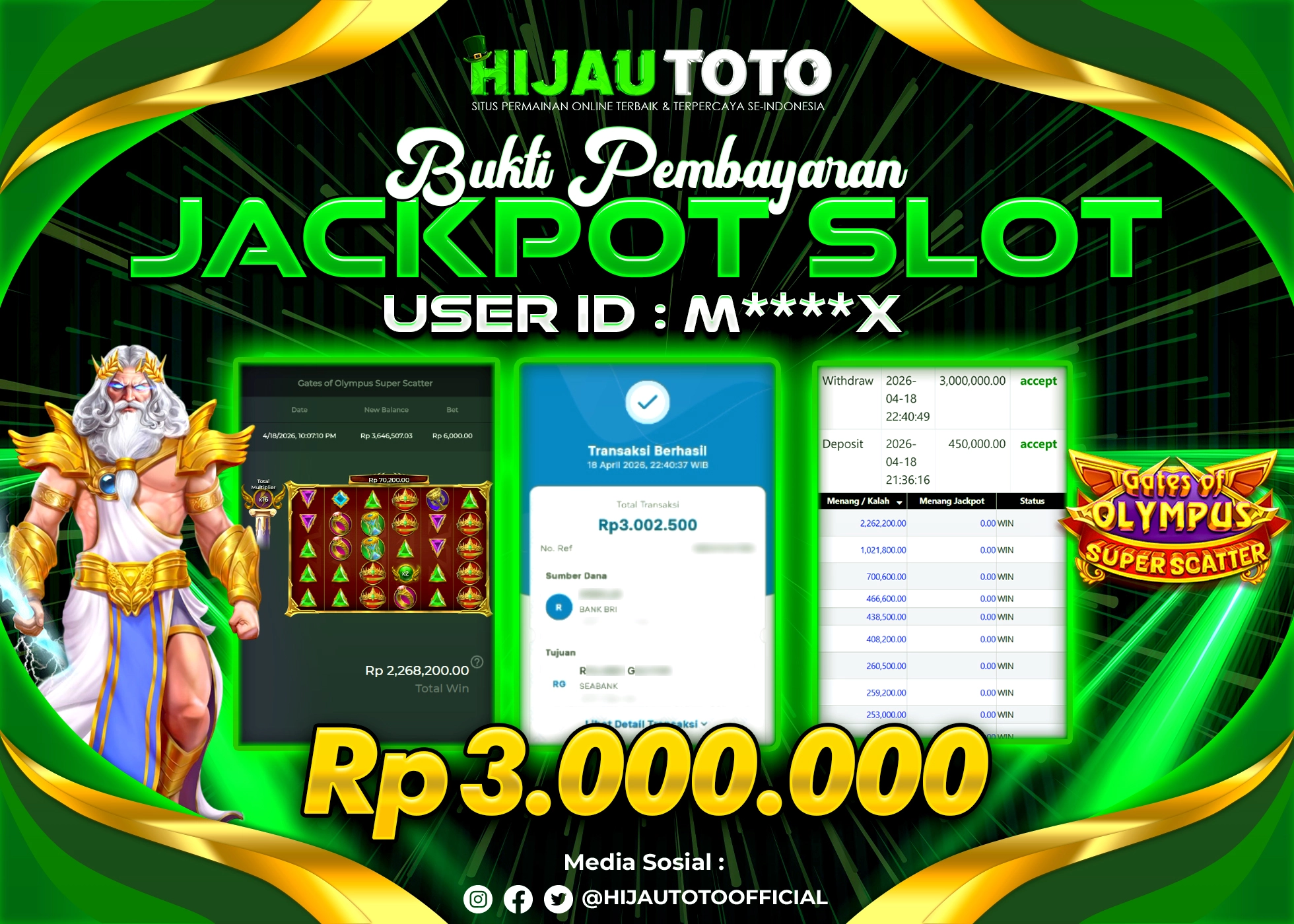 Selamat Kepada Member HIJAUTOTO M****X Telah Jackpot Di SLOT GATES OF OLYMPUS SUPER SCATTER