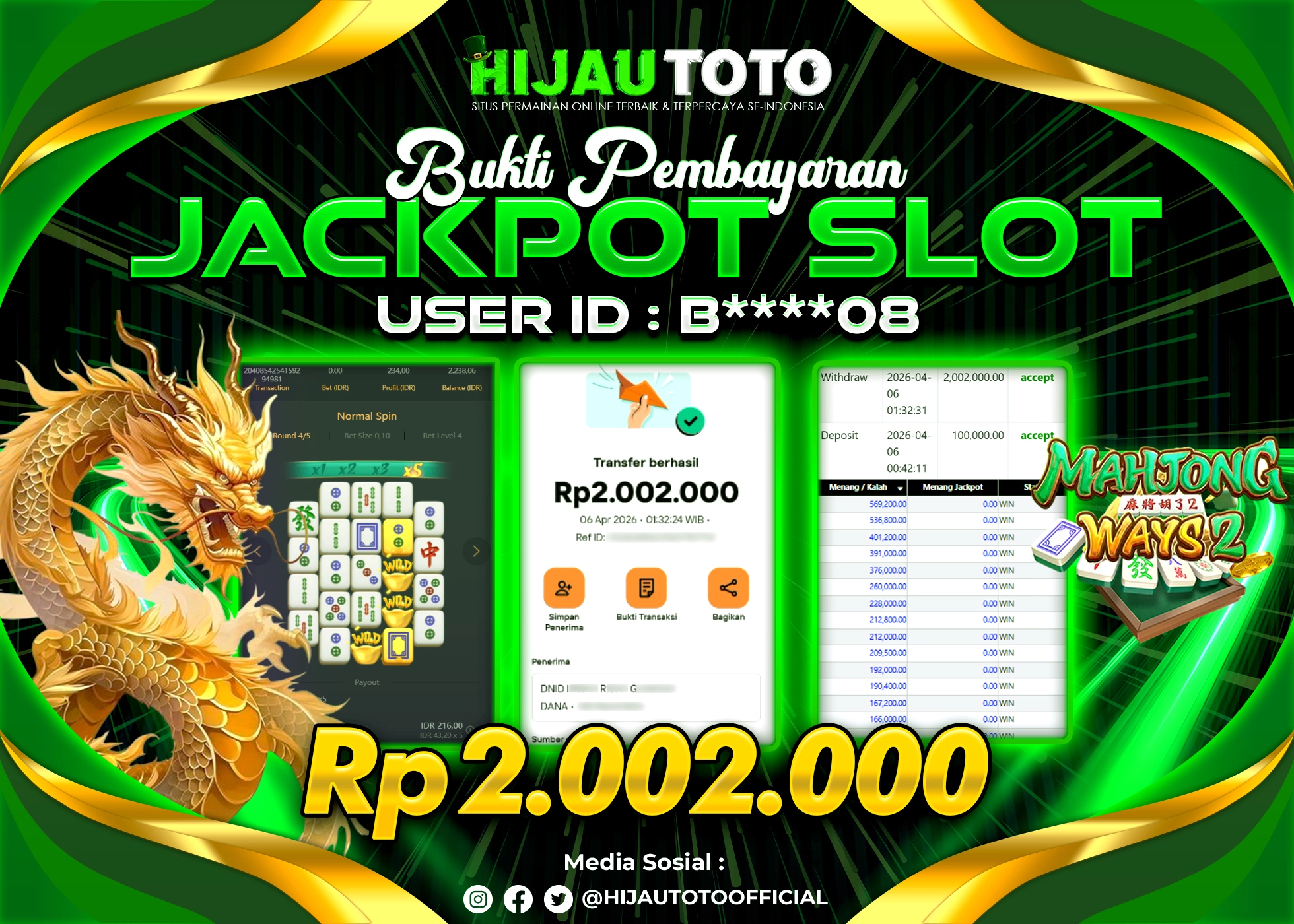 Bergabung dengan HIJAUTOTO sangat mudah dan cepat. Cukup lakukan pendaftaran dengan data lengkap, lakukan deposit minimal Rp5.000 melalui berbagai metode termasuk QRIS, dan mulai bertaruh dengan minimal taruhan Rp100. Dapatkan juga bonus new member 100% untuk modal bermain lebih besar.