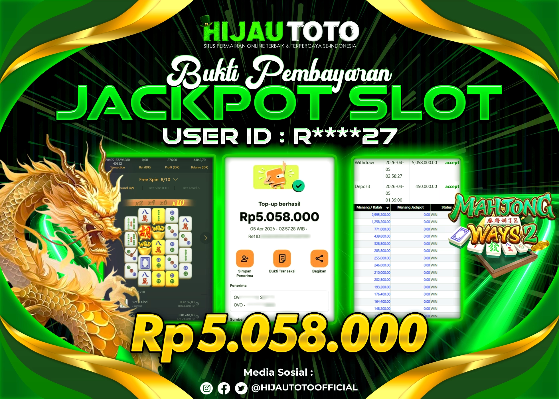 Selamat datang di HIJAUTOTO, tempatnya seru-seruan dan cuan besar! Mulai main cukup dengan modal Rp5.000 aja, taruhan super murah dari Rp100 perak! Mau main slot yang penuh warna? Atau togel dari 20 pasaran paling hits? Atau mungkin tembak ikan yang bikin deg-degan? Tenang, ada juga taruhan bola, sabung ayam, dan live casino yang bikin suasana makin hidup! Daftar sekarang dan dapetin bonus new member 100% langsung, biar modalmu makin tebal. Deposit gampang banget, bisa pakai QRIS, dan kalau butuh bantuan, customer service kita siap 24 jam nonstop. Jadi, tunggu apa lagi? Yuk, gabung dan bawa pulang kemenangannya cuma di HIJAUTOTO!