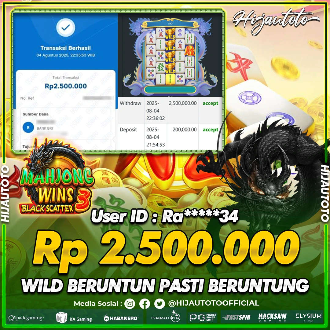 Selamat Kepada Member HIJAUTOTO RA*****34 Telah Jackpot Di SLOT MAHJONG WINS 3 BLACK SCATTER