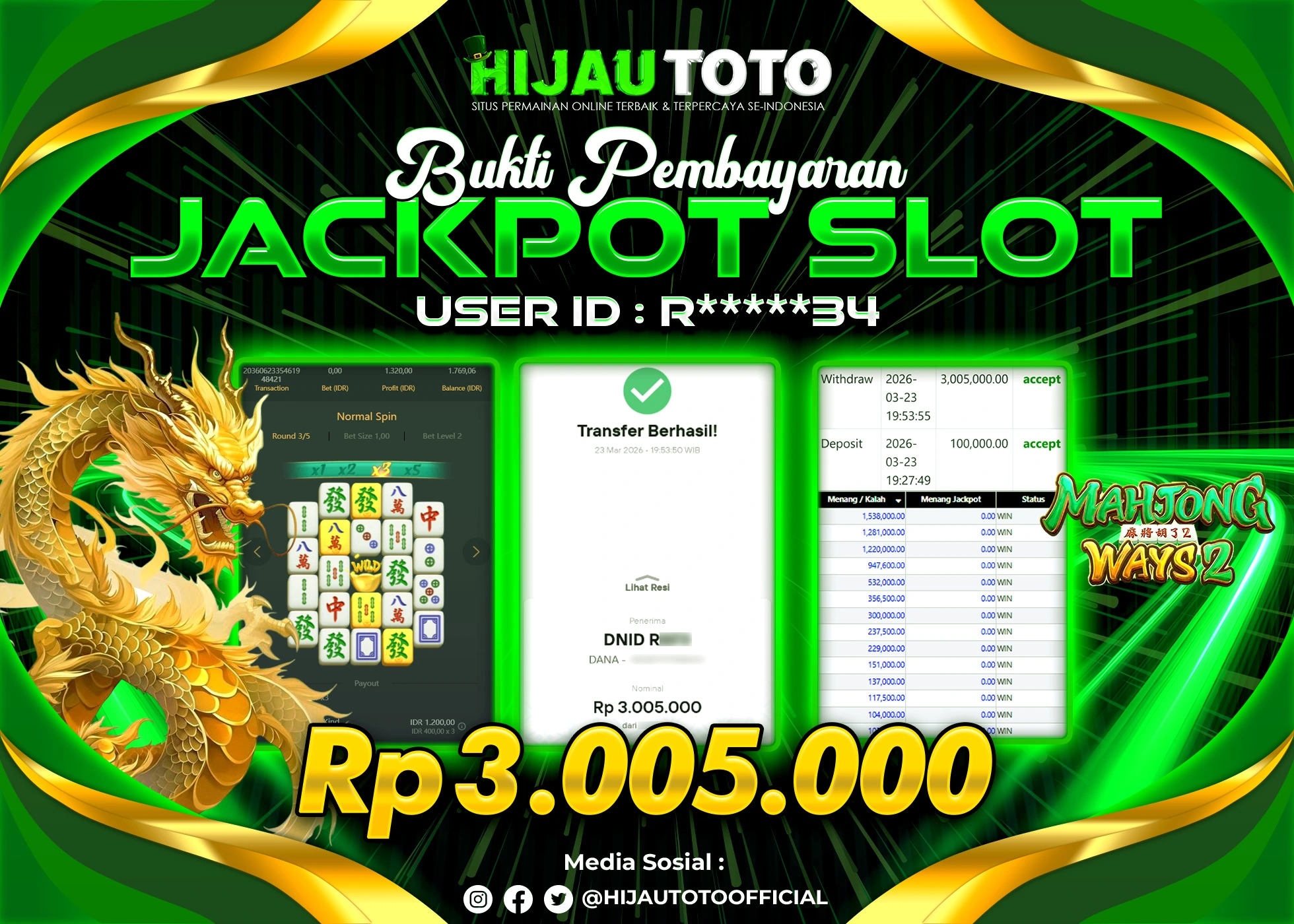 Bergabung dengan HIJAUTOTO sangat mudah dan cepat. Cukup lakukan pendaftaran dengan data lengkap, lakukan deposit minimal Rp5.000 melalui berbagai metode termasuk QRIS, dan mulai bertaruh dengan minimal taruhan Rp100. Dapatkan juga bonus new member 100% untuk modal bermain lebih besar.
