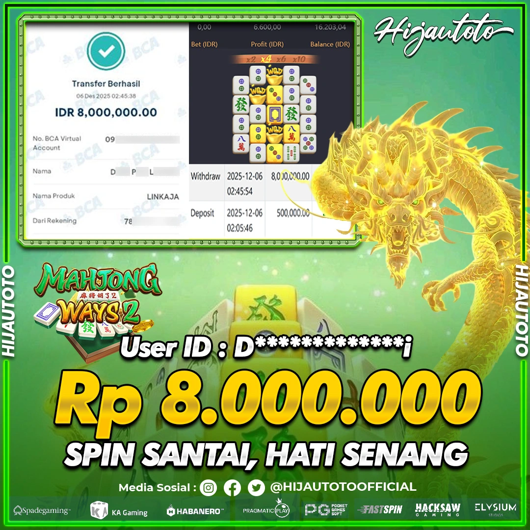 Selamat datang di HIJAUTOTO, tempatnya seru-seruan dan cuan besar! Mulai main cukup dengan modal Rp5.000 aja, taruhan super murah dari Rp100 perak! Mau main slot yang penuh warna? Atau togel dari 20 pasaran paling hits? Atau mungkin tembak ikan yang bikin deg-degan? Tenang, ada juga taruhan bola, sabung ayam, dan live casino yang bikin suasana makin hidup! Daftar sekarang dan dapetin bonus new member 100% langsung, biar modalmu makin tebal. Deposit gampang banget, bisa pakai QRIS, dan kalau butuh bantuan, customer service kita siap 24 jam nonstop. Jadi, tunggu apa lagi? Yuk, gabung dan bawa pulang kemenangannya cuma di HIJAUTOTO!