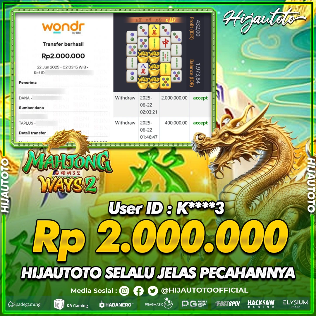 Selamat datang di HIJAUTOTO, tempatnya seru-seruan dan cuan besar! Mulai main cukup dengan modal Rp5.000 aja, taruhan super murah dari Rp100 perak! Mau main slot yang penuh warna? Atau togel dari 20 pasaran paling hits? Atau mungkin tembak ikan yang bikin deg-degan? Tenang, ada juga taruhan bola, sabung ayam, dan live casino yang bikin suasana makin hidup! Daftar sekarang dan dapetin bonus new member 100% langsung, biar modalmu makin tebal. Deposit gampang banget, bisa pakai QRIS, dan kalau butuh bantuan, customer service kita siap 24 jam nonstop. Jadi, tunggu apa lagi? Yuk, gabung dan bawa pulang kemenangannya cuma di HIJAUTOTO!