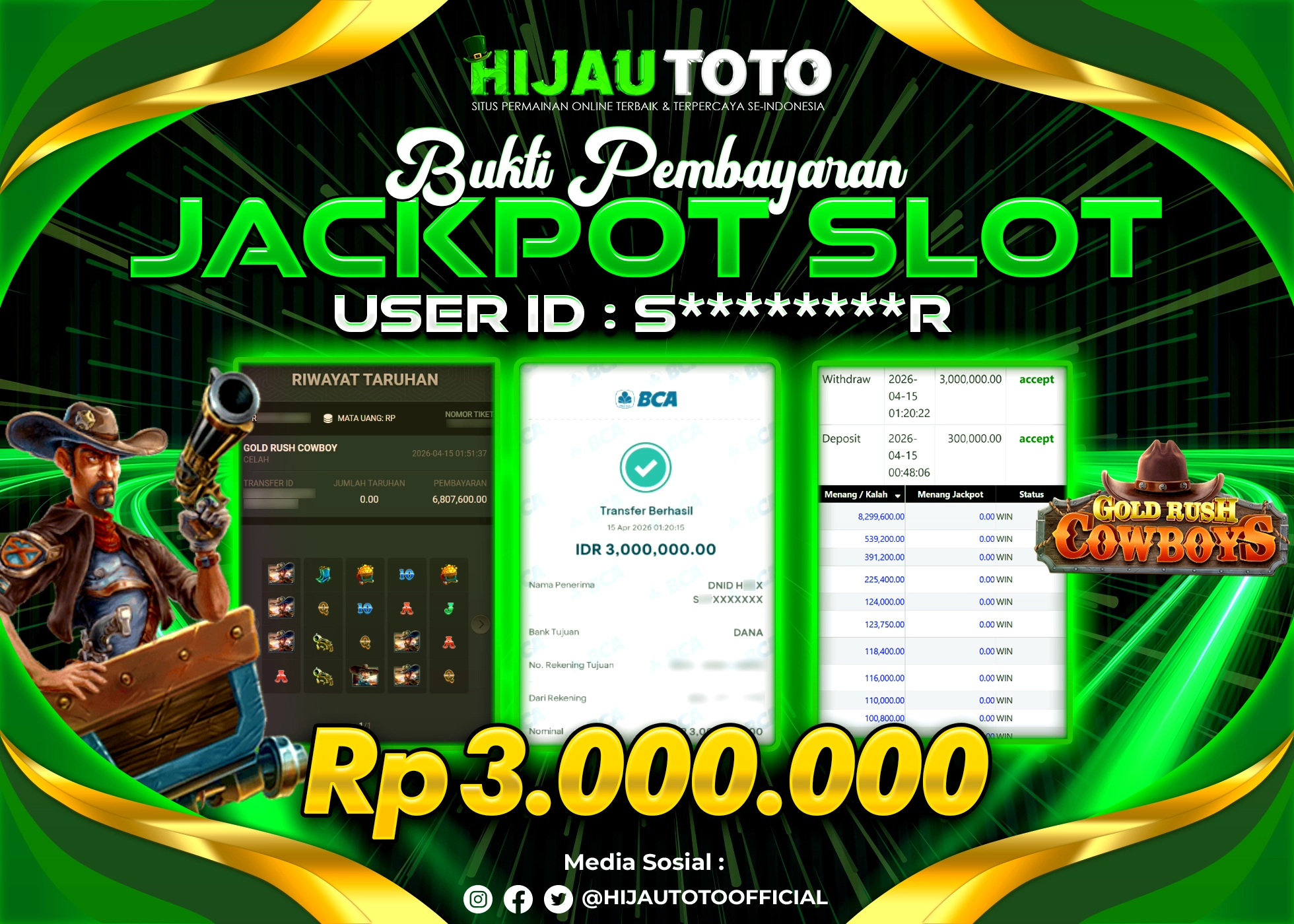β¨ JACKPOT DI SLOT GOLD RUSH COWBOYS β¨