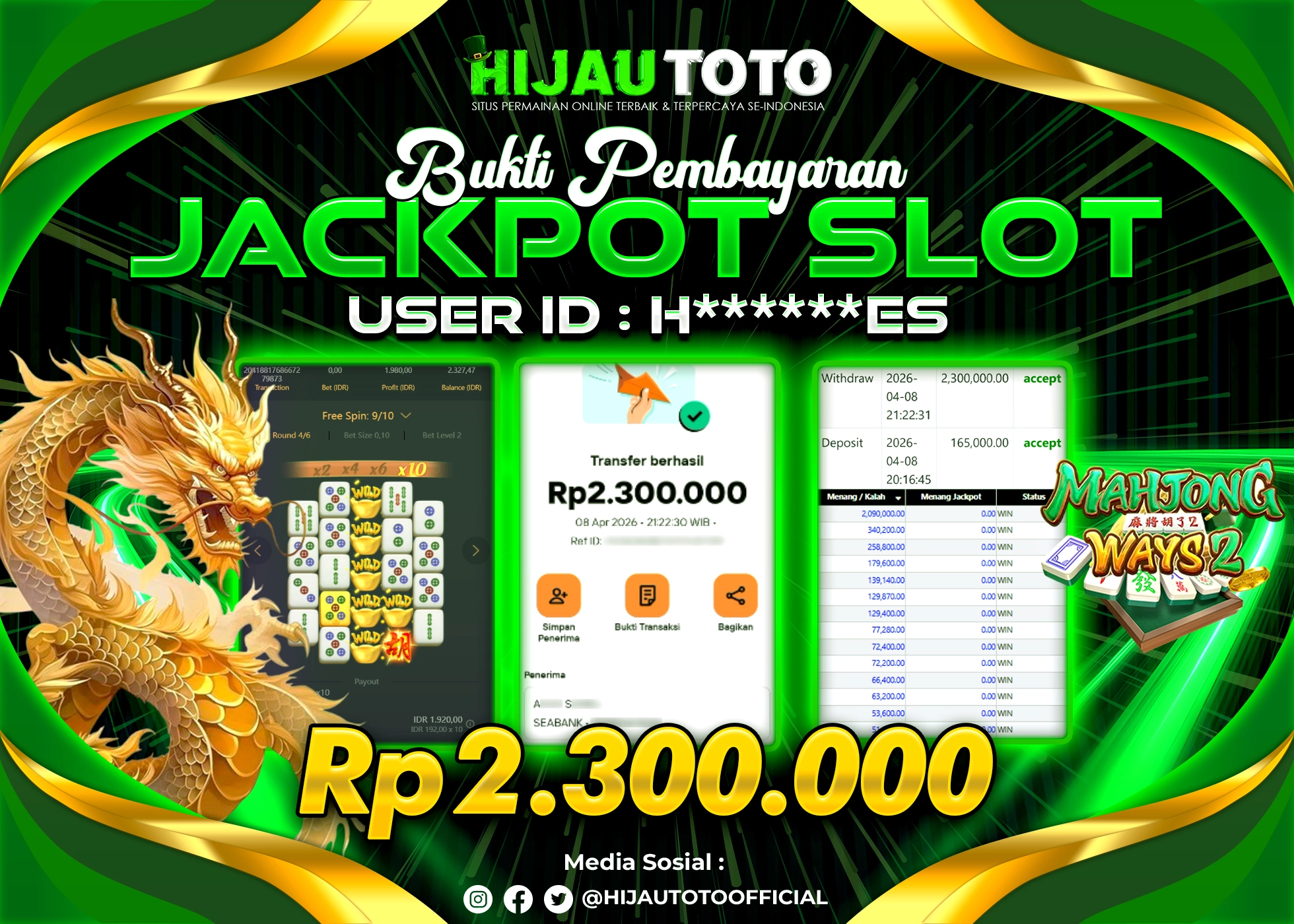 HIJAUTOTO adalah pilihan terbaik bagi Anda yang mencari platform judi online terpercaya dengan modal terjangkau, ragam permainan lengkap, bonus menguntungkan, dan layanan profesional 24 jam. Semua kebutuhan hiburan dan keuntungan Anda terpenuhi dalam satu tempat.