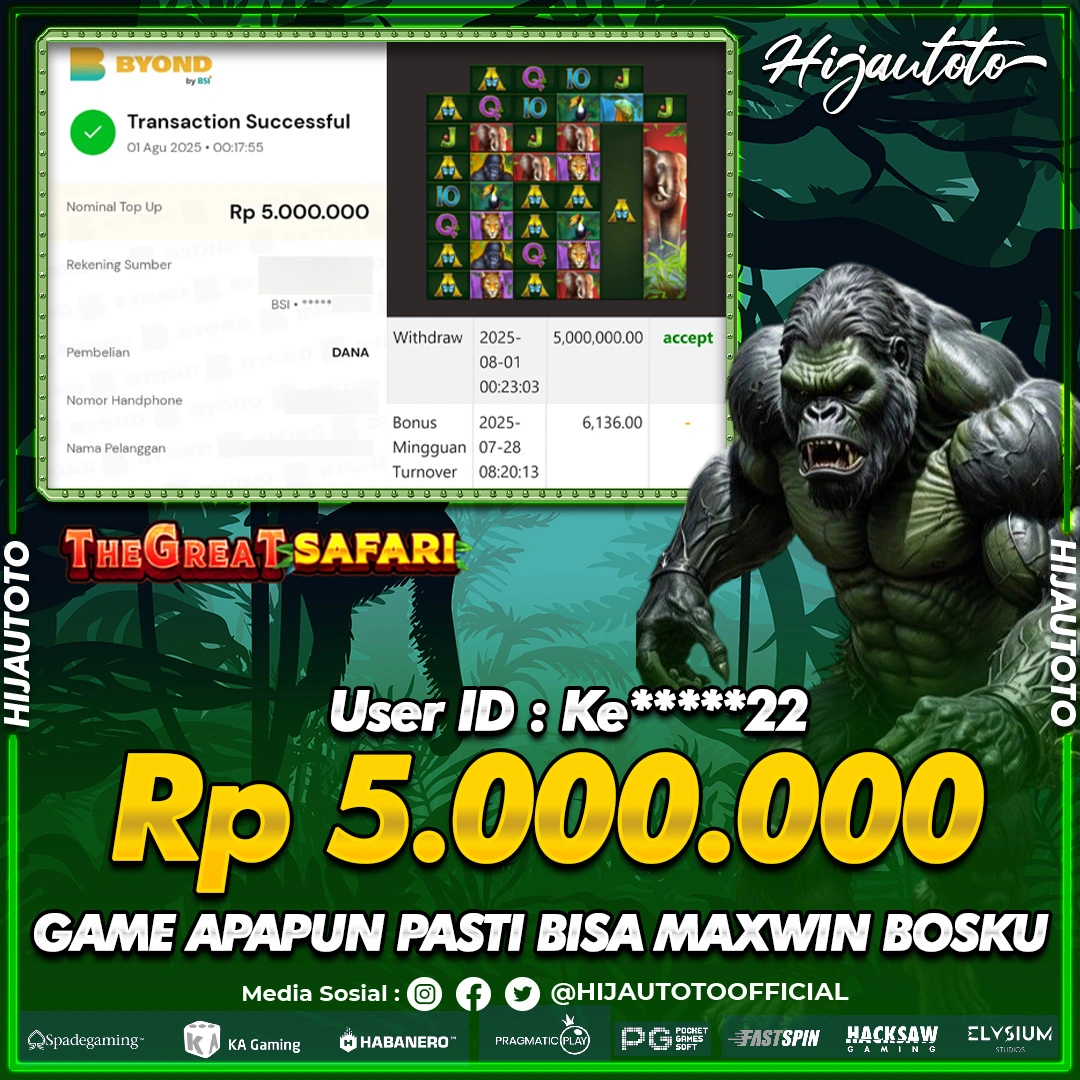 Selamat datang di HIJAUTOTO, tempatnya seru-seruan dan cuan besar! Mulai main cukup dengan modal Rp5.000 aja, taruhan super murah dari Rp100 perak! Mau main slot yang penuh warna? Atau togel dari 20 pasaran paling hits? Atau mungkin tembak ikan yang bikin deg-degan? Tenang, ada juga taruhan bola, sabung ayam, dan live casino yang bikin suasana makin hidup! Daftar sekarang dan dapetin bonus new member 100% langsung, biar modalmu makin tebal. Deposit gampang banget, bisa pakai QRIS, dan kalau butuh bantuan, customer service kita siap 24 jam nonstop. Jadi, tunggu apa lagi? Yuk, gabung dan bawa pulang kemenangannya cuma di HIJAUTOTO!