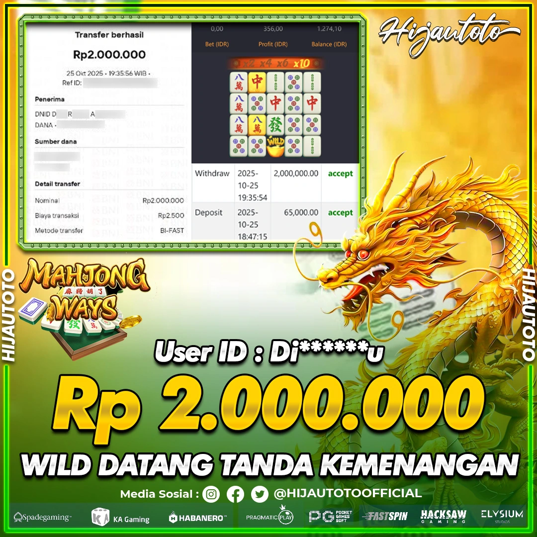 Selamat datang di HIJAUTOTO, tempatnya seru-seruan dan cuan besar! Mulai main cukup dengan modal Rp5.000 aja, taruhan super murah dari Rp100 perak! Mau main slot yang penuh warna? Atau togel dari 20 pasaran paling hits? Atau mungkin tembak ikan yang bikin deg-degan? Tenang, ada juga taruhan bola, sabung ayam, dan live casino yang bikin suasana makin hidup! Daftar sekarang dan dapetin bonus new member 100% langsung, biar modalmu makin tebal. Deposit gampang banget, bisa pakai QRIS, dan kalau butuh bantuan, customer service kita siap 24 jam nonstop. Jadi, tunggu apa lagi? Yuk, gabung dan bawa pulang kemenangannya cuma di HIJAUTOTO!