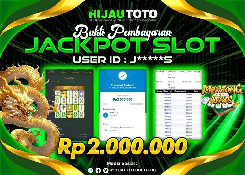 Selamat datang di HIJAUTOTO, tempatnya seru-seruan dan cuan besar! Mulai main cukup dengan modal Rp5.000 aja, taruhan super murah dari Rp100 perak! Mau main slot yang penuh warna? Atau togel dari 20 pasaran paling hits? Atau mungkin tembak ikan yang bikin deg-degan? Tenang, ada juga taruhan bola, sabung ayam, dan live casino yang bikin suasana makin hidup! Daftar sekarang dan dapetin bonus new member 100% langsung, biar modalmu makin tebal. Deposit gampang banget, bisa pakai QRIS, dan kalau butuh bantuan, customer service kita siap 24 jam nonstop. Jadi, tunggu apa lagi? Yuk, gabung dan bawa pulang kemenangannya cuma di HIJAUTOTO!