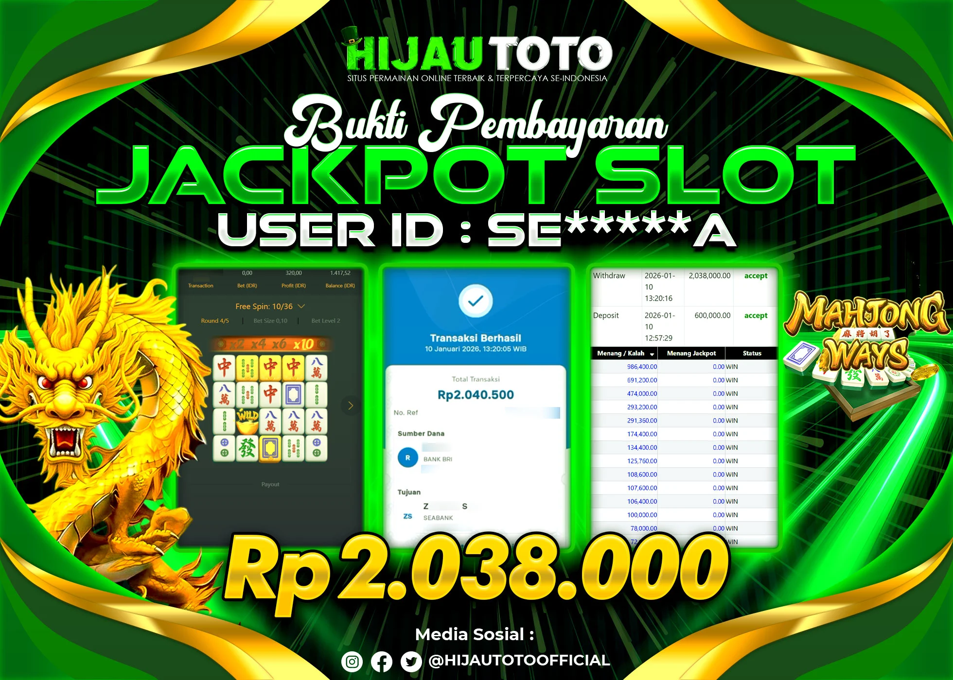 Selamat datang di HIJAUTOTO, tempatnya seru-seruan dan cuan besar! Mulai main cukup dengan modal Rp5.000 aja, taruhan super murah dari Rp100 perak! Mau main slot yang penuh warna? Atau togel dari 20 pasaran paling hits? Atau mungkin tembak ikan yang bikin deg-degan? Tenang, ada juga taruhan bola, sabung ayam, dan live casino yang bikin suasana makin hidup! Daftar sekarang dan dapetin bonus new member 100% langsung, biar modalmu makin tebal. Deposit gampang banget, bisa pakai QRIS, dan kalau butuh bantuan, customer service kita siap 24 jam nonstop. Jadi, tunggu apa lagi? Yuk, gabung dan bawa pulang kemenangannya cuma di HIJAUTOTO!