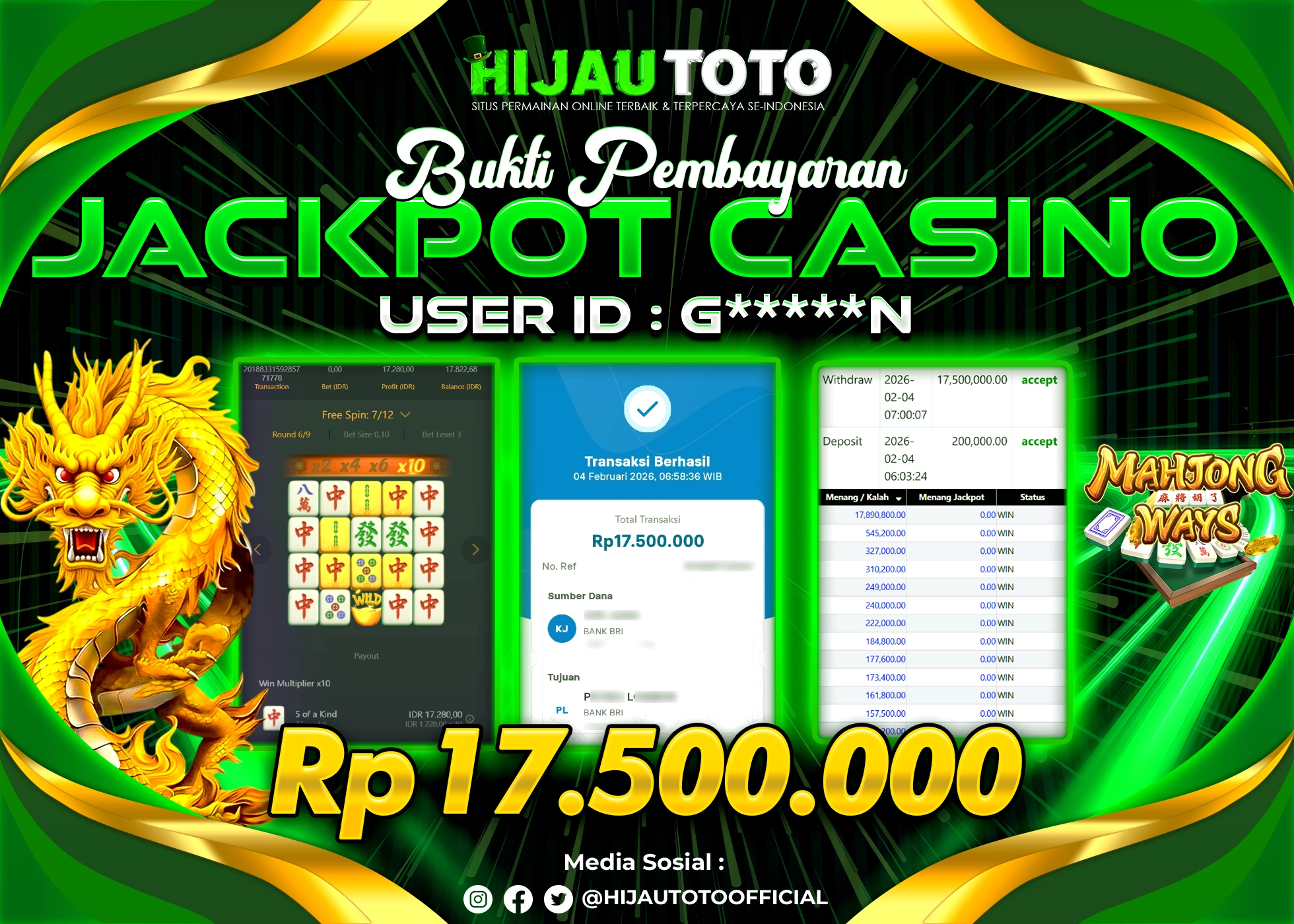 Bergabung dengan HIJAUTOTO sangat mudah dan cepat. Cukup lakukan pendaftaran dengan data lengkap, lakukan deposit minimal Rp5.000 melalui berbagai metode termasuk QRIS, dan mulai bertaruh dengan minimal taruhan Rp100. Dapatkan juga bonus new member 100% untuk modal bermain lebih besar.