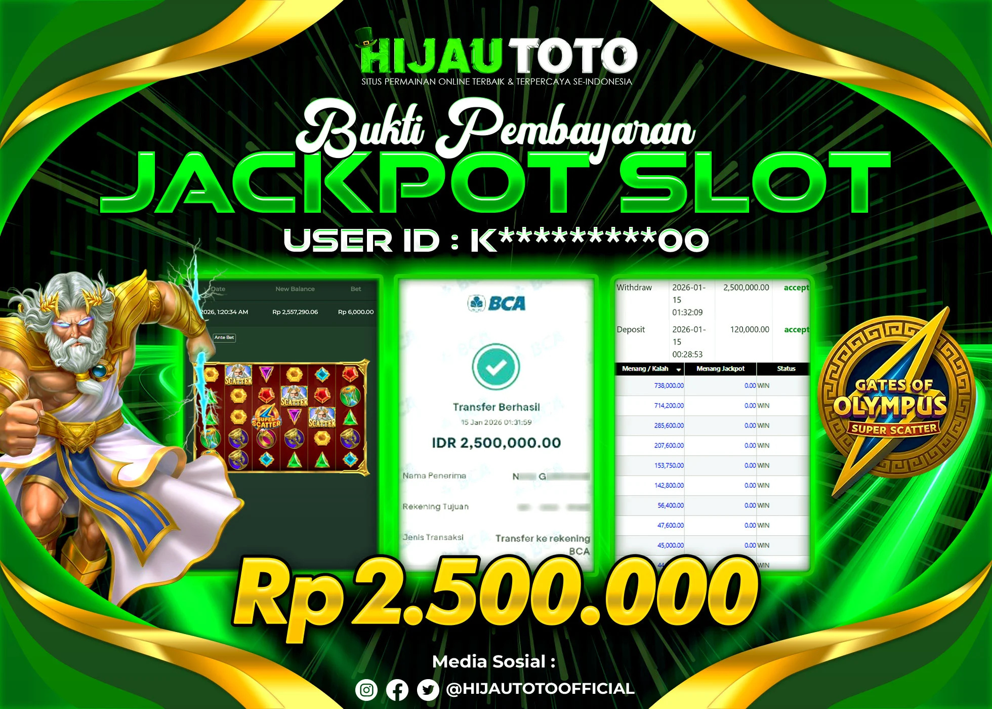 Selamat datang di HIJAUTOTO, tempatnya seru-seruan dan cuan besar! Mulai main cukup dengan modal Rp5.000 aja, taruhan super murah dari Rp100 perak! Mau main slot yang penuh warna? Atau togel dari 20 pasaran paling hits? Atau mungkin tembak ikan yang bikin deg-degan? Tenang, ada juga taruhan bola, sabung ayam, dan live casino yang bikin suasana makin hidup! Daftar sekarang dan dapetin bonus new member 100% langsung, biar modalmu makin tebal. Deposit gampang banget, bisa pakai QRIS, dan kalau butuh bantuan, customer service kita siap 24 jam nonstop. Jadi, tunggu apa lagi? Yuk, gabung dan bawa pulang kemenangannya cuma di HIJAUTOTO!