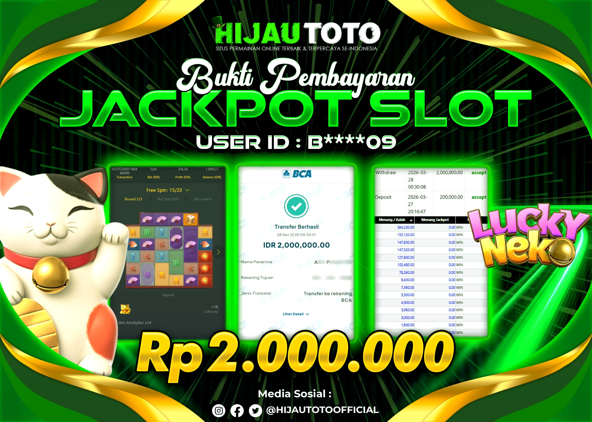 Selamat Kepada Member HIJAUTOTO B*****9 Telah Jackpot Di SLOT LUCKY NEKO