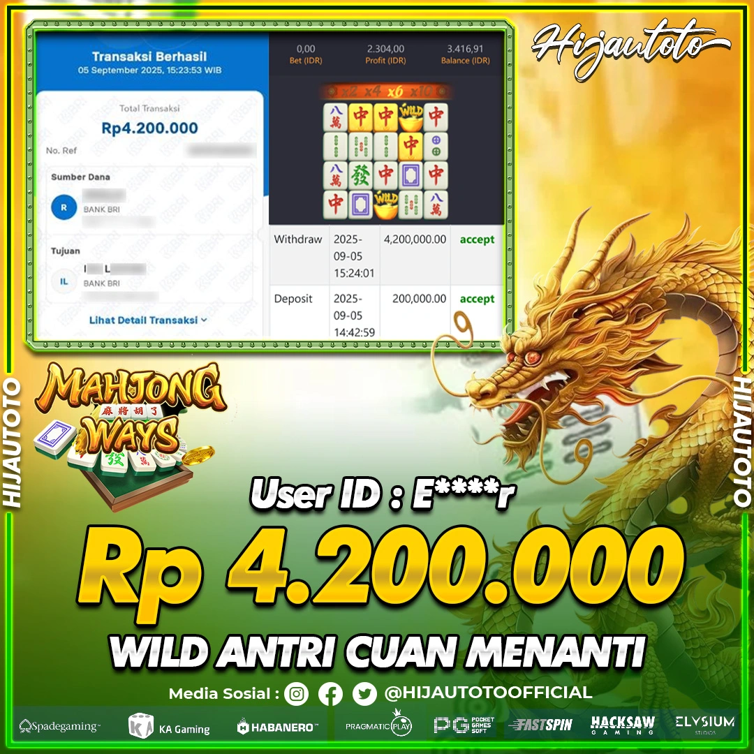 Selamat datang di HIJAUTOTO, tempatnya seru-seruan dan cuan besar! Mulai main cukup dengan modal Rp5.000 aja, taruhan super murah dari Rp100 perak! Mau main slot yang penuh warna? Atau togel dari 20 pasaran paling hits? Atau mungkin tembak ikan yang bikin deg-degan? Tenang, ada juga taruhan bola, sabung ayam, dan live casino yang bikin suasana makin hidup! Daftar sekarang dan dapetin bonus new member 100% langsung, biar modalmu makin tebal. Deposit gampang banget, bisa pakai QRIS, dan kalau butuh bantuan, customer service kita siap 24 jam nonstop. Jadi, tunggu apa lagi? Yuk, gabung dan bawa pulang kemenangannya cuma di HIJAUTOTO!