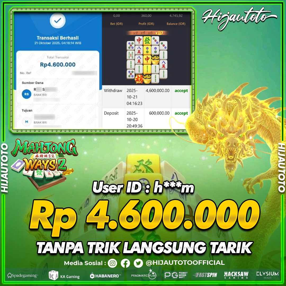 Selamat datang di HIJAUTOTO, tempatnya seru-seruan dan cuan besar! Mulai main cukup dengan modal Rp5.000 aja, taruhan super murah dari Rp100 perak! Mau main slot yang penuh warna? Atau togel dari 20 pasaran paling hits? Atau mungkin tembak ikan yang bikin deg-degan? Tenang, ada juga taruhan bola, sabung ayam, dan live casino yang bikin suasana makin hidup! Daftar sekarang dan dapetin bonus new member 100% langsung, biar modalmu makin tebal. Deposit gampang banget, bisa pakai QRIS, dan kalau butuh bantuan, customer service kita siap 24 jam nonstop. Jadi, tunggu apa lagi? Yuk, gabung dan bawa pulang kemenangannya cuma di HIJAUTOTO!