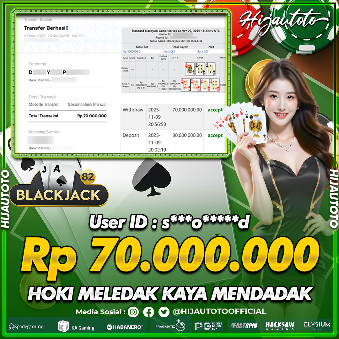 Nikmati pengalaman bermain casino langsung dari dealer profesional dalam fitur Live Casino HIJAUTOTO. Bermain blackjack, roulette, baccarat, dan permainan casino klasik lainnya secara real-time dengan suasana yang autentik dan interaktif.