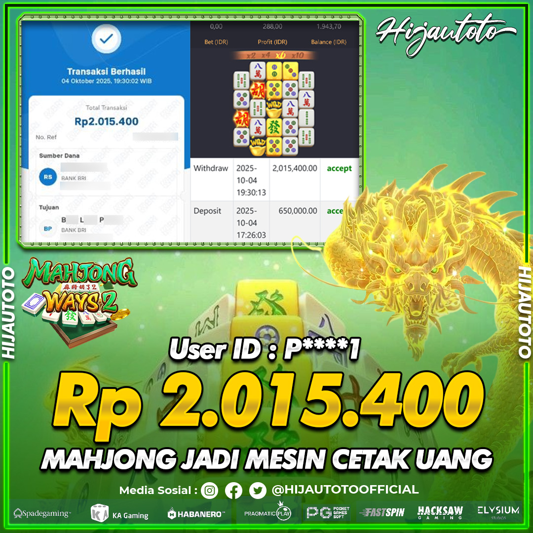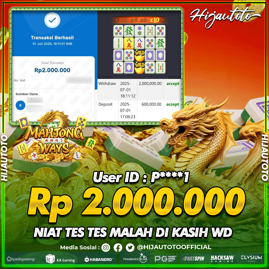 Selamat datang di HIJAUTOTO, tempatnya seru-seruan dan cuan besar! Mulai main cukup dengan modal Rp5.000 aja, taruhan super murah dari Rp100 perak! Mau main slot yang penuh warna? Atau togel dari 20 pasaran paling hits? Atau mungkin tembak ikan yang bikin deg-degan? Tenang, ada juga taruhan bola, sabung ayam, dan live casino yang bikin suasana makin hidup! Daftar sekarang dan dapetin bonus new member 100% langsung, biar modalmu makin tebal. Deposit gampang banget, bisa pakai QRIS, dan kalau butuh bantuan, customer service kita siap 24 jam nonstop. Jadi, tunggu apa lagi? Yuk, gabung dan bawa pulang kemenangannya cuma di HIJAUTOTO!
