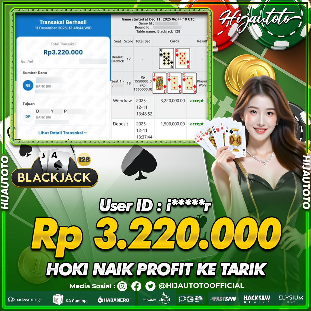 Selamat Kepada Member HIJAUTOTO I****R Telah Jackpot Di LIVE CASINO BLACKJACK 128