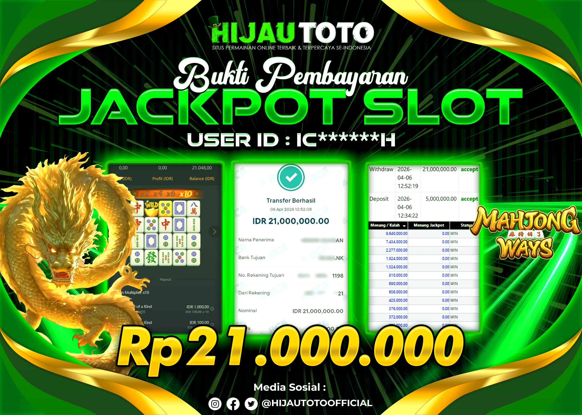 Selamat datang di HIJAUTOTO, tempatnya seru-seruan dan cuan besar! Mulai main cukup dengan modal Rp5.000 aja, taruhan super murah dari Rp100 perak! Mau main slot yang penuh warna? Atau togel dari 20 pasaran paling hits? Atau mungkin tembak ikan yang bikin deg-degan? Tenang, ada juga taruhan bola, sabung ayam, dan live casino yang bikin suasana makin hidup! Daftar sekarang dan dapetin bonus new member 100% langsung, biar modalmu makin tebal. Deposit gampang banget, bisa pakai QRIS, dan kalau butuh bantuan, customer service kita siap 24 jam nonstop. Jadi, tunggu apa lagi? Yuk, gabung dan bawa pulang kemenangannya cuma di HIJAUTOTO!
