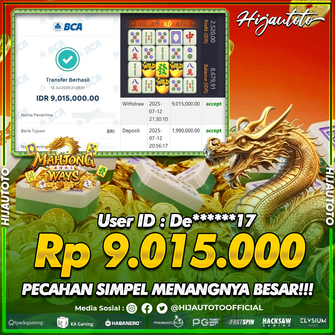 Selamat datang di HIJAUTOTO, tempatnya seru-seruan dan cuan besar! Mulai main cukup dengan modal Rp5.000 aja, taruhan super murah dari Rp100 perak! Mau main slot yang penuh warna? Atau togel dari 20 pasaran paling hits? Atau mungkin tembak ikan yang bikin deg-degan? Tenang, ada juga taruhan bola, sabung ayam, dan live casino yang bikin suasana makin hidup! Daftar sekarang dan dapetin bonus new member 100% langsung, biar modalmu makin tebal. Deposit gampang banget, bisa pakai QRIS, dan kalau butuh bantuan, customer service kita siap 24 jam nonstop. Jadi, tunggu apa lagi? Yuk, gabung dan bawa pulang kemenangannya cuma di HIJAUTOTO!