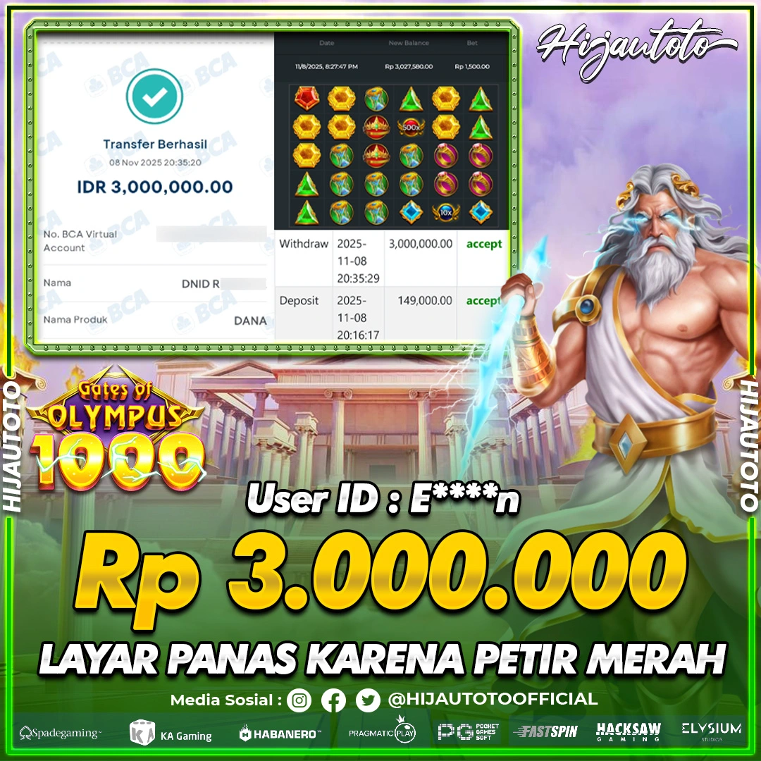 Karena berhasil memenangkan Rp.Rp.2.051.560 dari permainan seru SLOT GATES OF OLYMPUS 1000 di HIJAUTOTO! πŸ’°πŸ’Έ