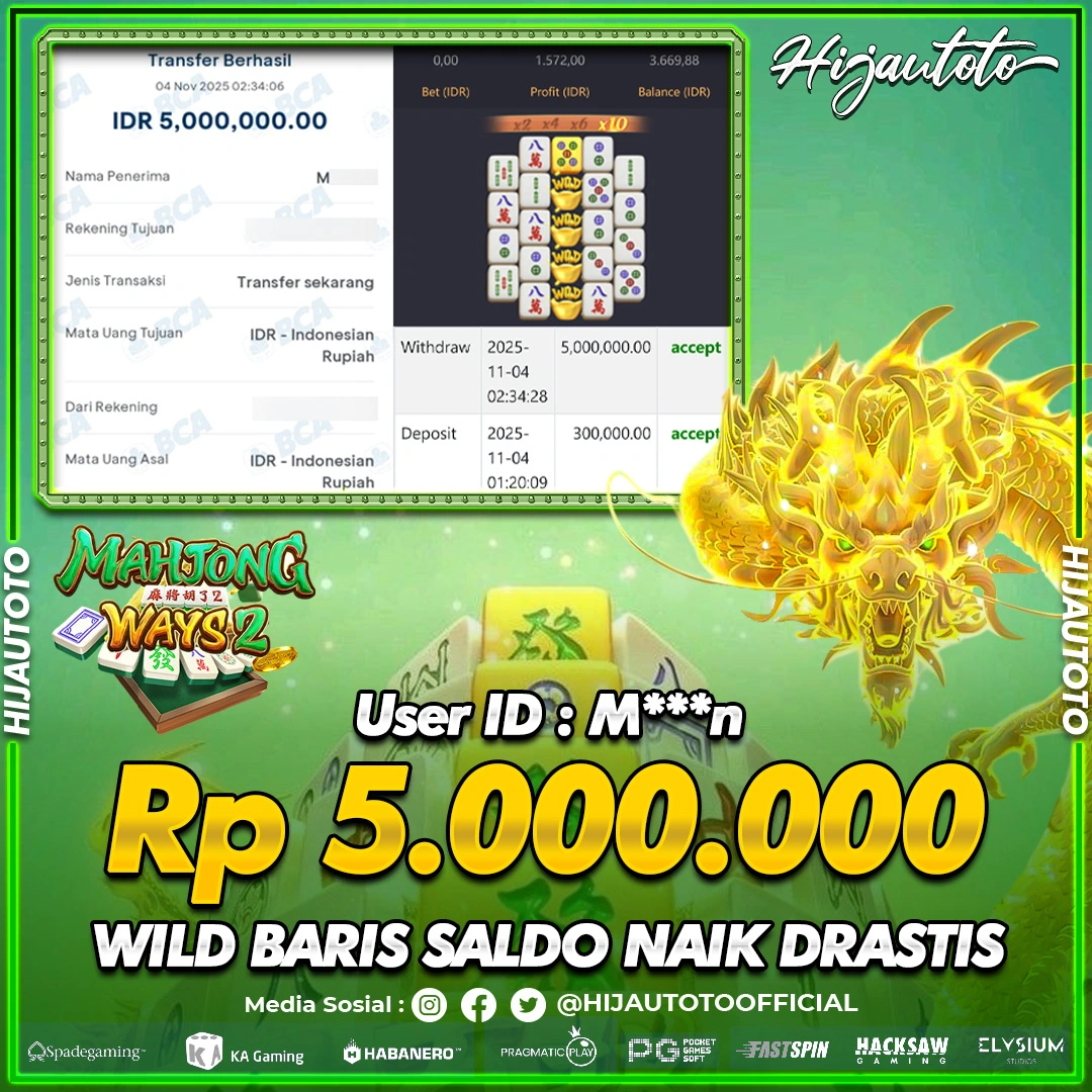 Selamat datang di HIJAUTOTO, tempatnya seru-seruan dan cuan besar! Mulai main cukup dengan modal Rp5.000 aja, taruhan super murah dari Rp100 perak! Mau main slot yang penuh warna? Atau togel dari 20 pasaran paling hits? Atau mungkin tembak ikan yang bikin deg-degan? Tenang, ada juga taruhan bola, sabung ayam, dan live casino yang bikin suasana makin hidup! Daftar sekarang dan dapetin bonus new member 100% langsung, biar modalmu makin tebal. Deposit gampang banget, bisa pakai QRIS, dan kalau butuh bantuan, customer service kita siap 24 jam nonstop. Jadi, tunggu apa lagi? Yuk, gabung dan bawa pulang kemenangannya cuma di HIJAUTOTO!