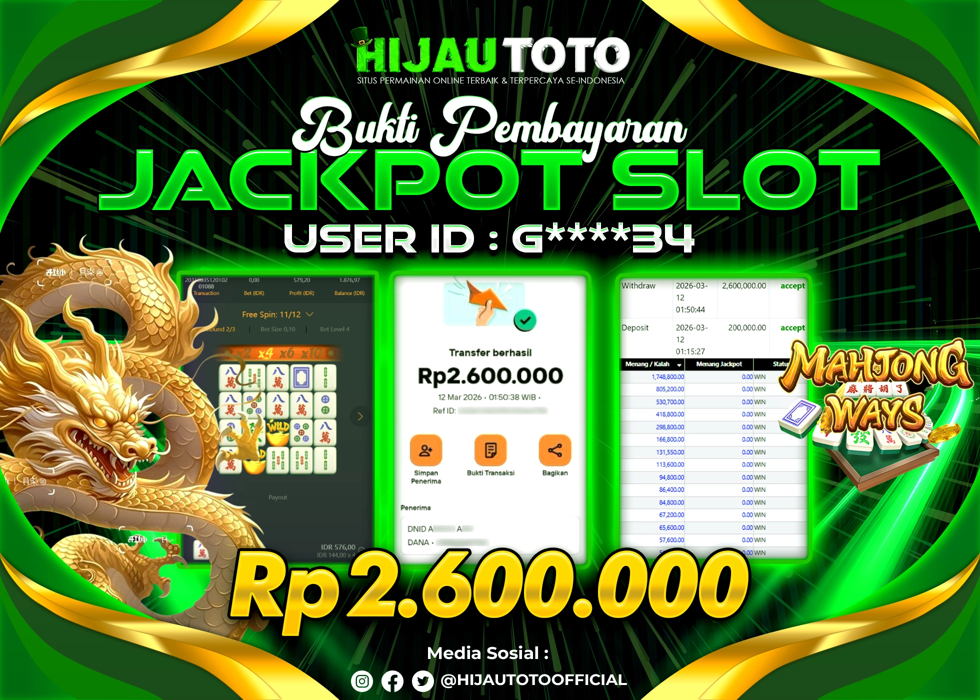 Bergabung dengan HIJAUTOTO sangat mudah dan cepat. Cukup lakukan pendaftaran dengan data lengkap, lakukan deposit minimal Rp5.000 melalui berbagai metode termasuk QRIS, dan mulai bertaruh dengan minimal taruhan Rp100. Dapatkan juga bonus new member 100% untuk modal bermain lebih besar.