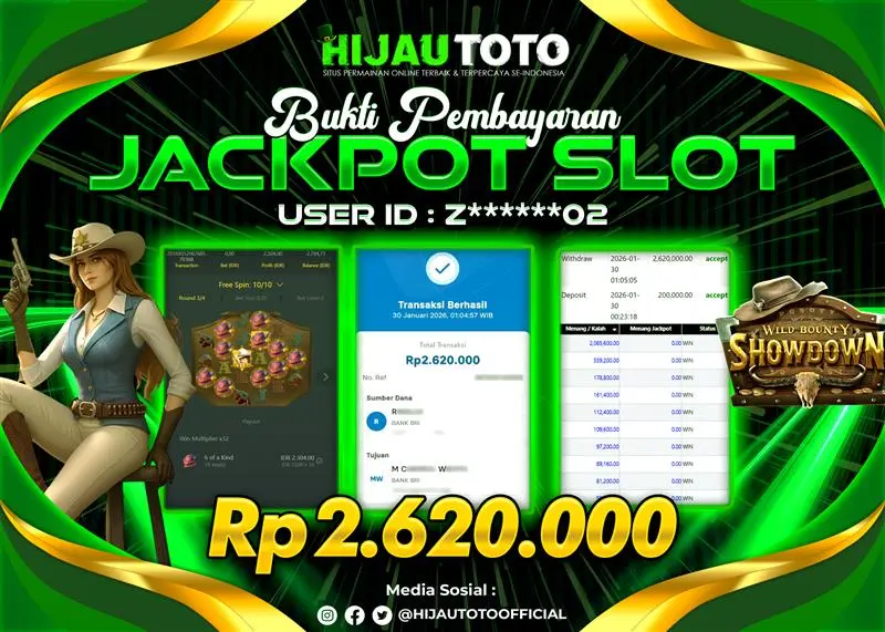 Selamat Kepada Member HIJAUTOTO Z******02 Telah Jackpot Di SLOT WILD BOUNTY SHOWDOWN