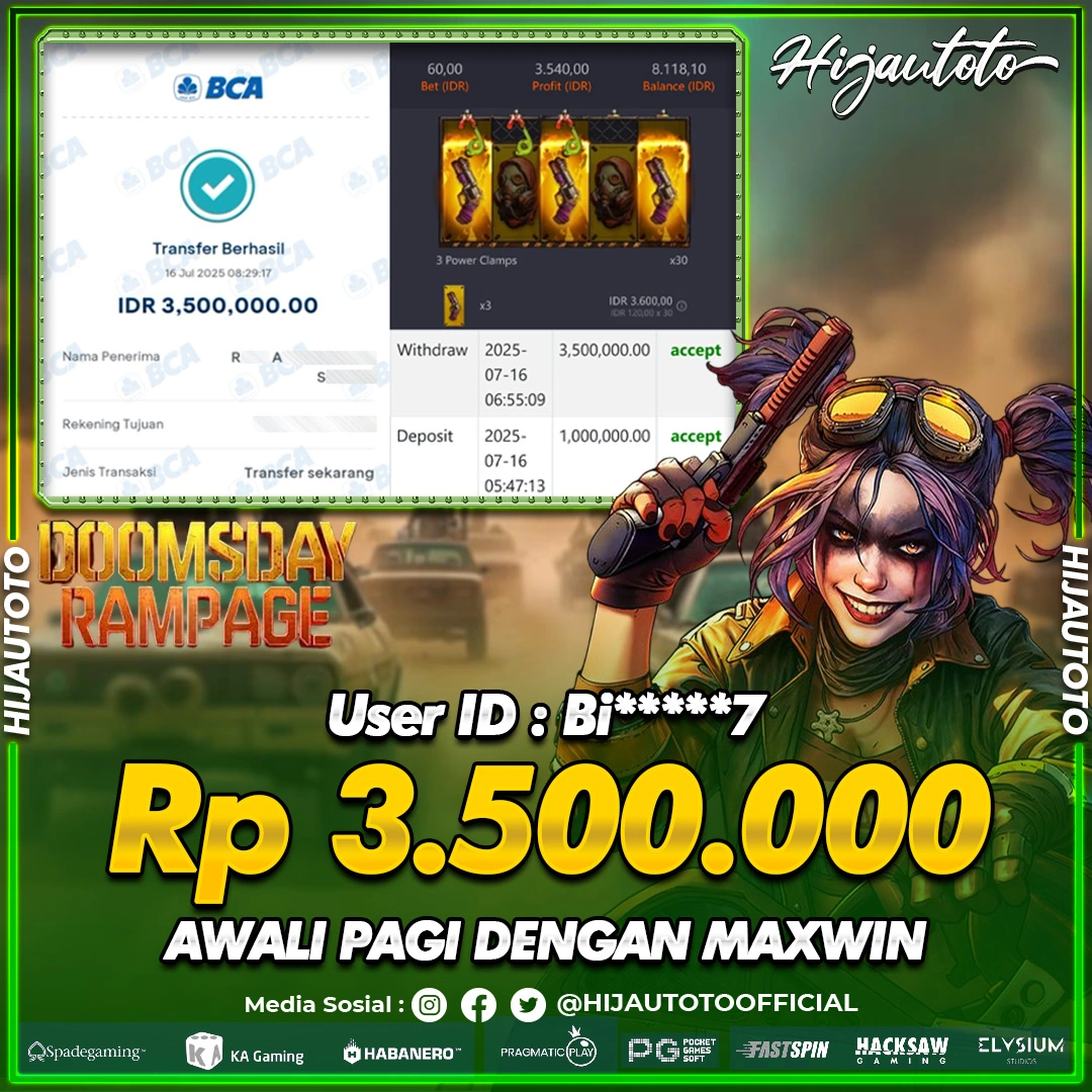 Selamat datang di HIJAUTOTO, tempatnya seru-seruan dan cuan besar! Mulai main cukup dengan modal Rp5.000 aja, taruhan super murah dari Rp100 perak! Mau main slot yang penuh warna? Atau togel dari 20 pasaran paling hits? Atau mungkin tembak ikan yang bikin deg-degan? Tenang, ada juga taruhan bola, sabung ayam, dan live casino yang bikin suasana makin hidup! Daftar sekarang dan dapetin bonus new member 100% langsung, biar modalmu makin tebal. Deposit gampang banget, bisa pakai QRIS, dan kalau butuh bantuan, customer service kita siap 24 jam nonstop. Jadi, tunggu apa lagi? Yuk, gabung dan bawa pulang kemenangannya cuma di HIJAUTOTO!