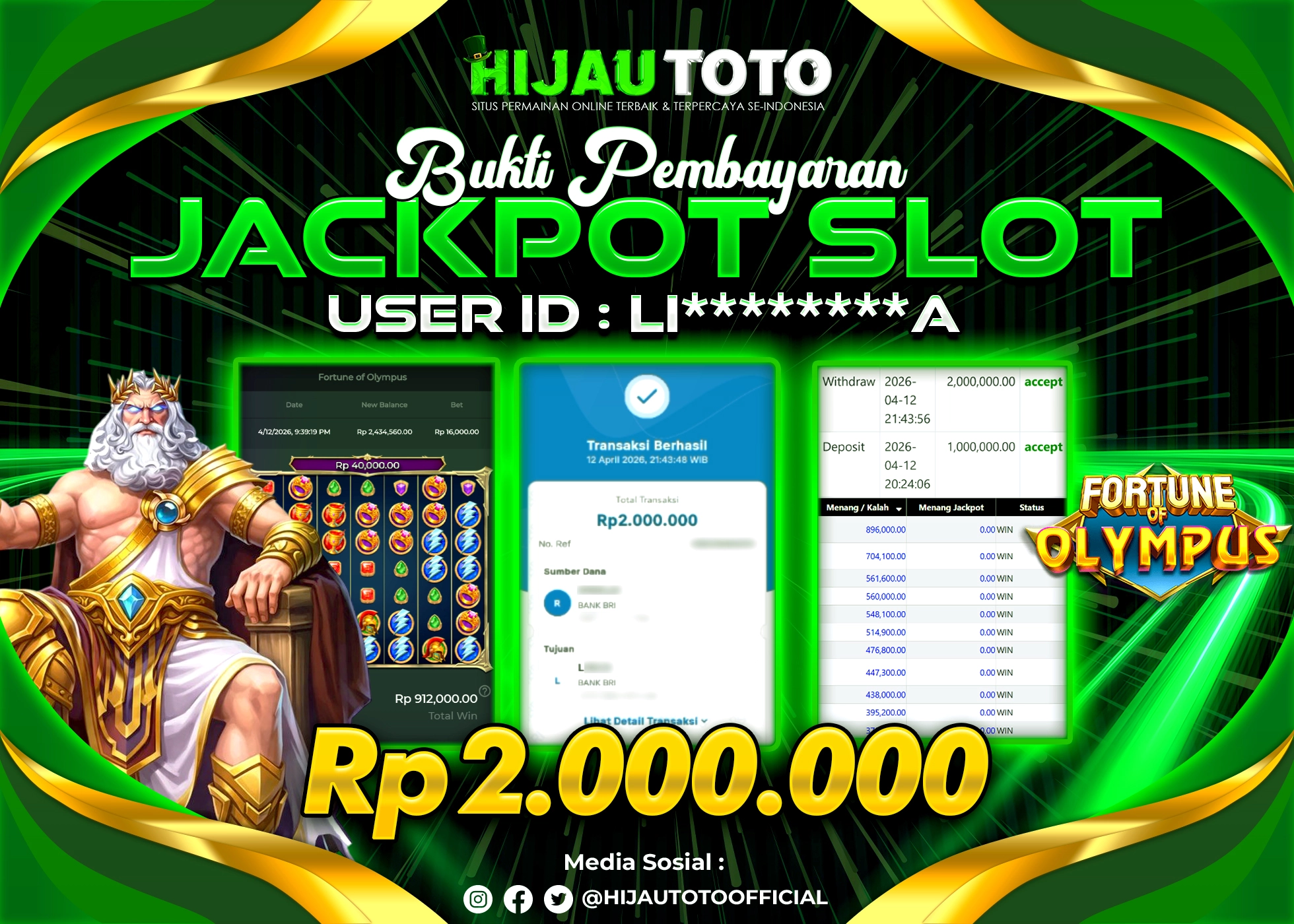 Selamat datang di HIJAUTOTO, tempatnya seru-seruan dan cuan besar! Mulai main cukup dengan modal Rp5.000 aja, taruhan super murah dari Rp100 perak! Mau main slot yang penuh warna? Atau togel dari 20 pasaran paling hits? Atau mungkin tembak ikan yang bikin deg-degan? Tenang, ada juga taruhan bola, sabung ayam, dan live casino yang bikin suasana makin hidup! Daftar sekarang dan dapetin bonus new member 100% langsung, biar modalmu makin tebal. Deposit gampang banget, bisa pakai QRIS, dan kalau butuh bantuan, customer service kita siap 24 jam nonstop. Jadi, tunggu apa lagi? Yuk, gabung dan bawa pulang kemenangannya cuma di HIJAUTOTO!