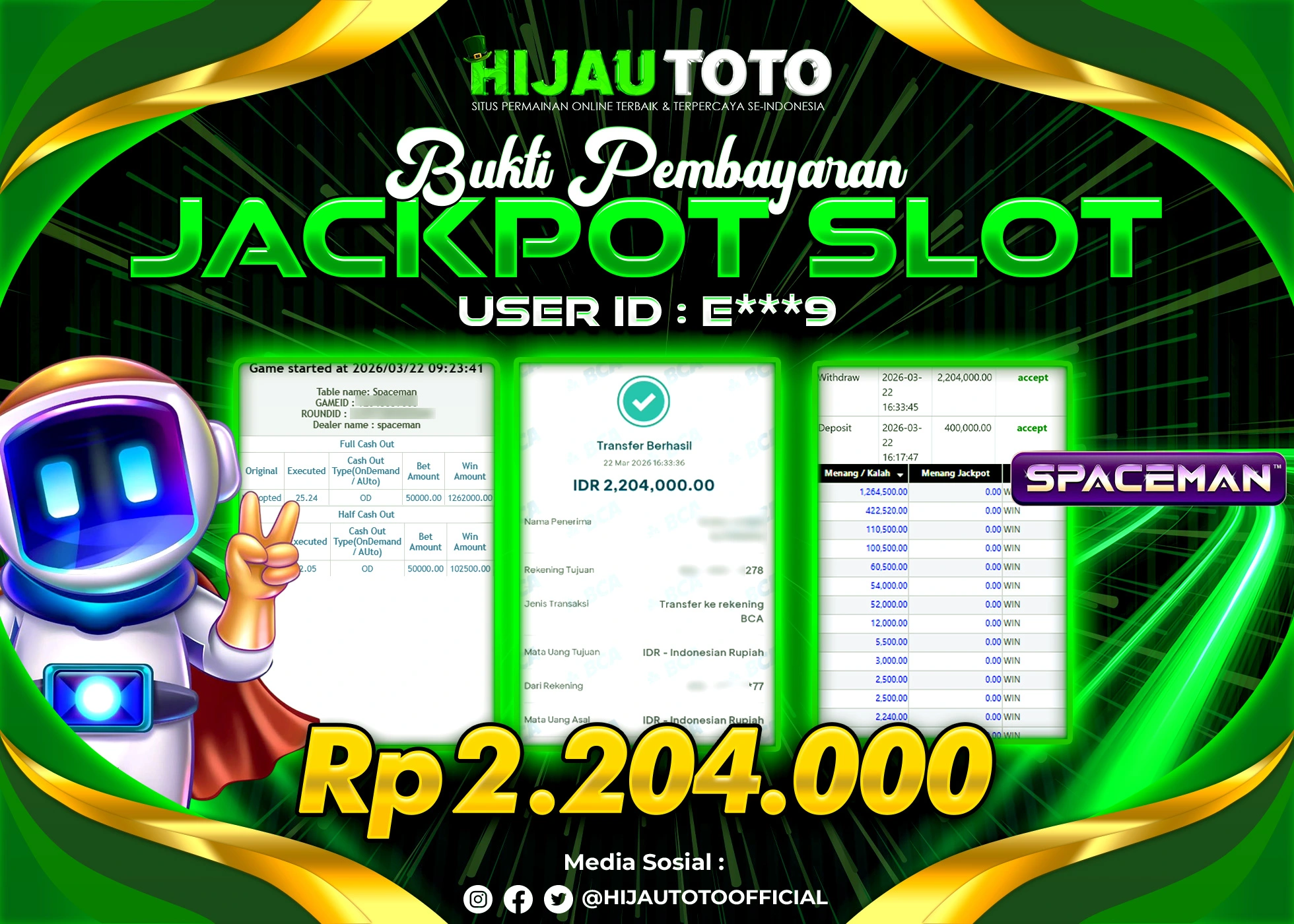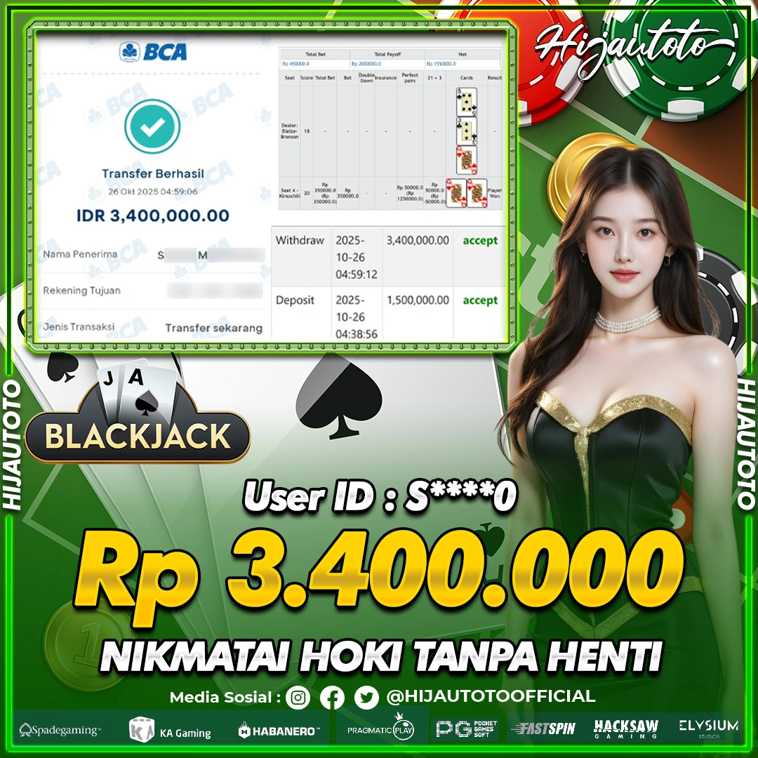 Selamat datang di HIJAUTOTO, tempatnya seru-seruan dan cuan besar! Mulai main cukup dengan modal Rp5.000 aja, taruhan super murah dari Rp100 perak! Mau main slot yang penuh warna? Atau togel dari 20 pasaran paling hits? Atau mungkin tembak ikan yang bikin deg-degan? Tenang, ada juga taruhan bola, sabung ayam, dan live casino yang bikin suasana makin hidup! Daftar sekarang dan dapetin bonus new member 100% langsung, biar modalmu makin tebal. Deposit gampang banget, bisa pakai QRIS, dan kalau butuh bantuan, customer service kita siap 24 jam nonstop. Jadi, tunggu apa lagi? Yuk, gabung dan bawa pulang kemenangannya cuma di HIJAUTOTO!