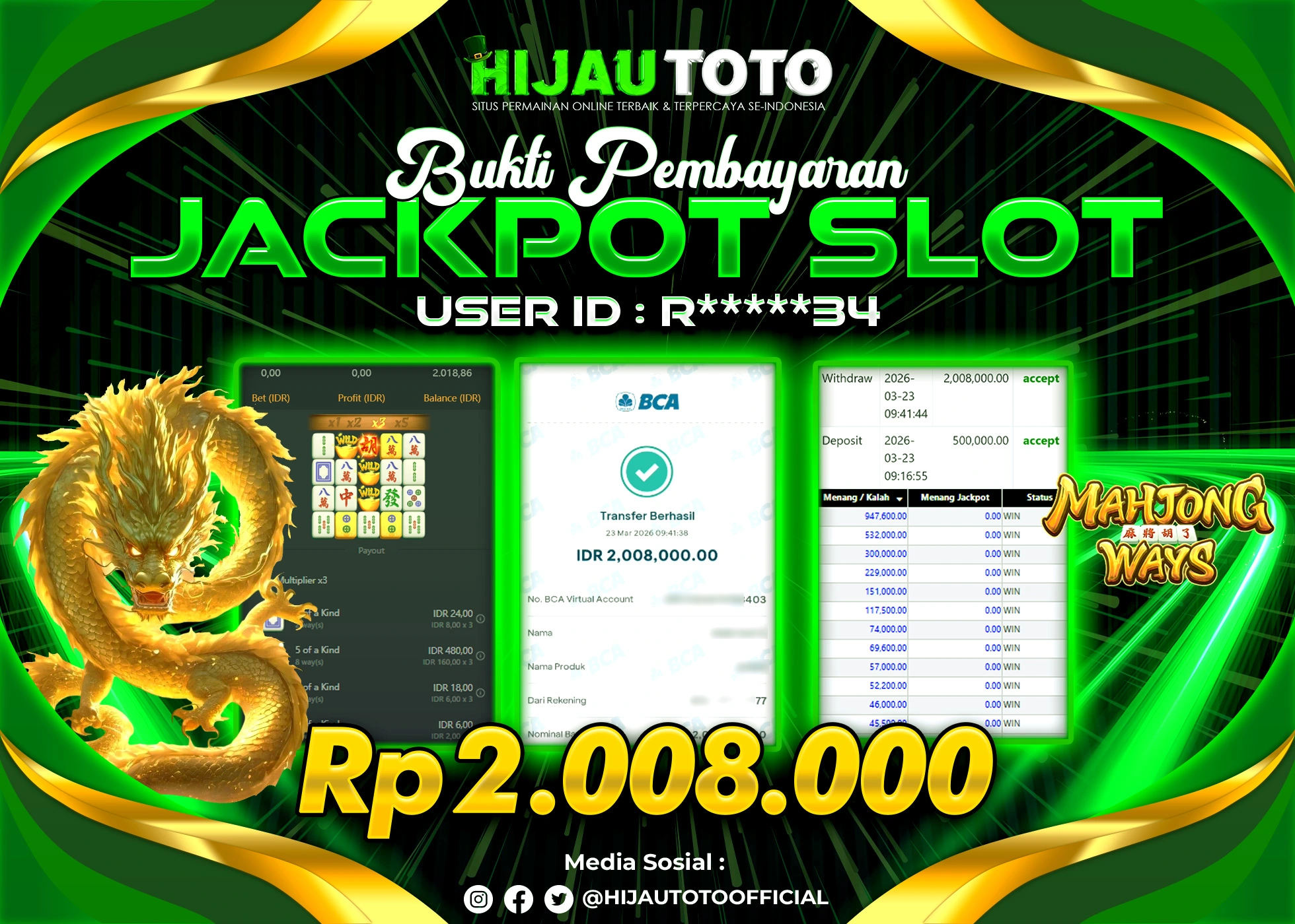 Selamat datang di HIJAUTOTO, tempatnya seru-seruan dan cuan besar! Mulai main cukup dengan modal Rp5.000 aja, taruhan super murah dari Rp100 perak! Mau main slot yang penuh warna? Atau togel dari 20 pasaran paling hits? Atau mungkin tembak ikan yang bikin deg-degan? Tenang, ada juga taruhan bola, sabung ayam, dan live casino yang bikin suasana makin hidup! Daftar sekarang dan dapetin bonus new member 100% langsung, biar modalmu makin tebal. Deposit gampang banget, bisa pakai QRIS, dan kalau butuh bantuan, customer service kita siap 24 jam nonstop. Jadi, tunggu apa lagi? Yuk, gabung dan bawa pulang kemenangannya cuma di HIJAUTOTO!