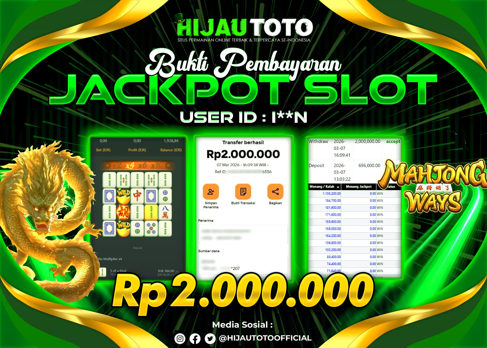 Bergabung dengan HIJAUTOTO sangat mudah dan cepat. Cukup lakukan pendaftaran dengan data lengkap, lakukan deposit minimal Rp5.000 melalui berbagai metode termasuk QRIS, dan mulai bertaruh dengan minimal taruhan Rp100. Dapatkan juga bonus new member 100% untuk modal bermain lebih besar.