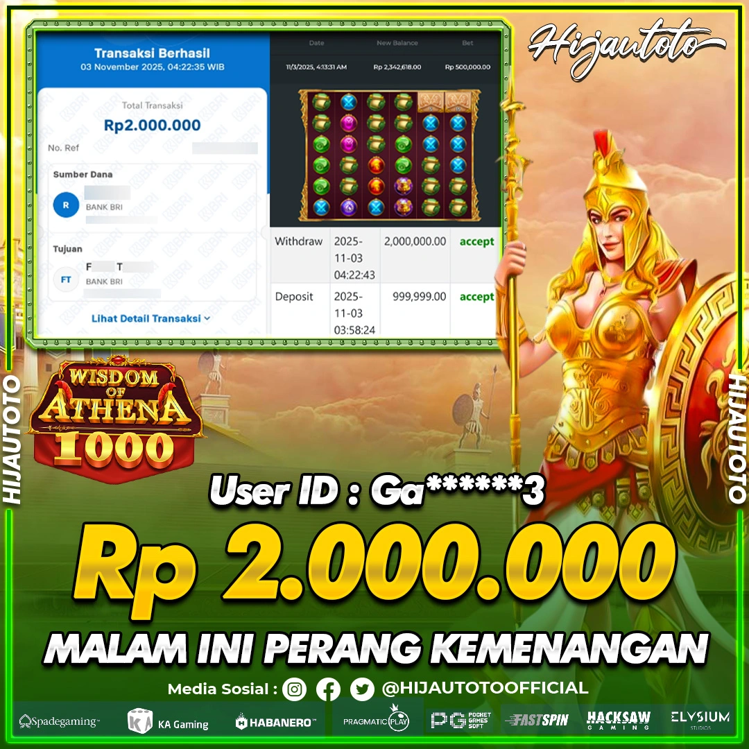 Selamat Kepada Member HIJAUTOTO GA******3 Telah Jackpot Di SLOT WISDOM OF ATHENA 1000