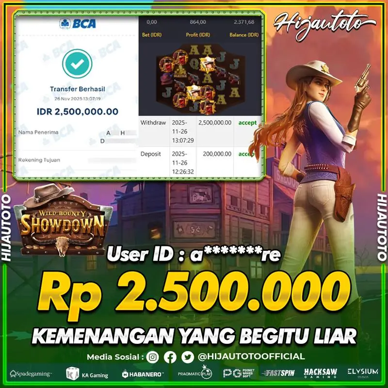 Selamat Kepada Member HIJAUTOTO A*******RE Telah Jackpot Di SLOT WILD
