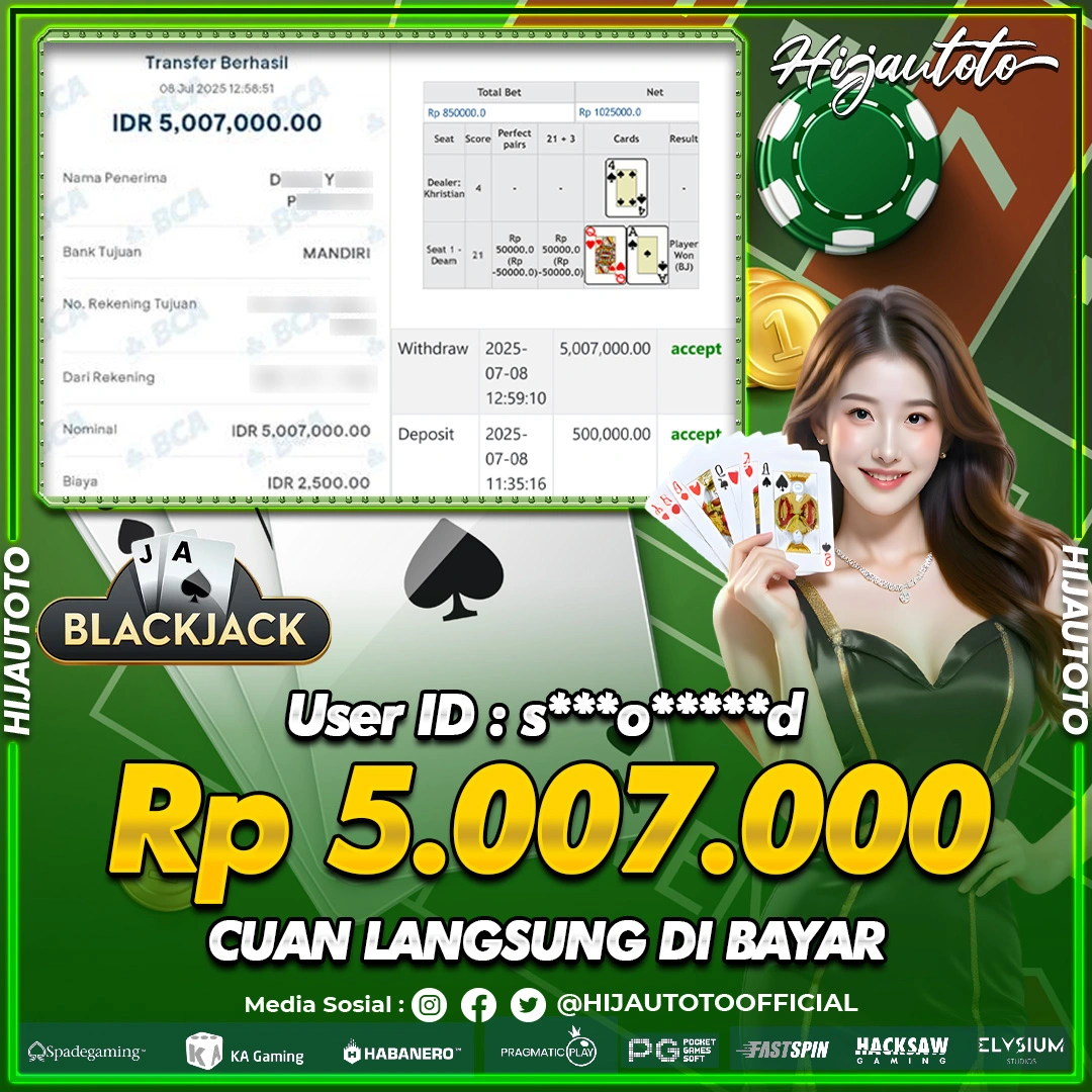 Nikmati pengalaman bermain casino langsung dari dealer profesional dalam fitur Live Casino HIJAUTOTO. Bermain blackjack, roulette, baccarat, dan permainan casino klasik lainnya secara real-time dengan suasana yang autentik dan interaktif.