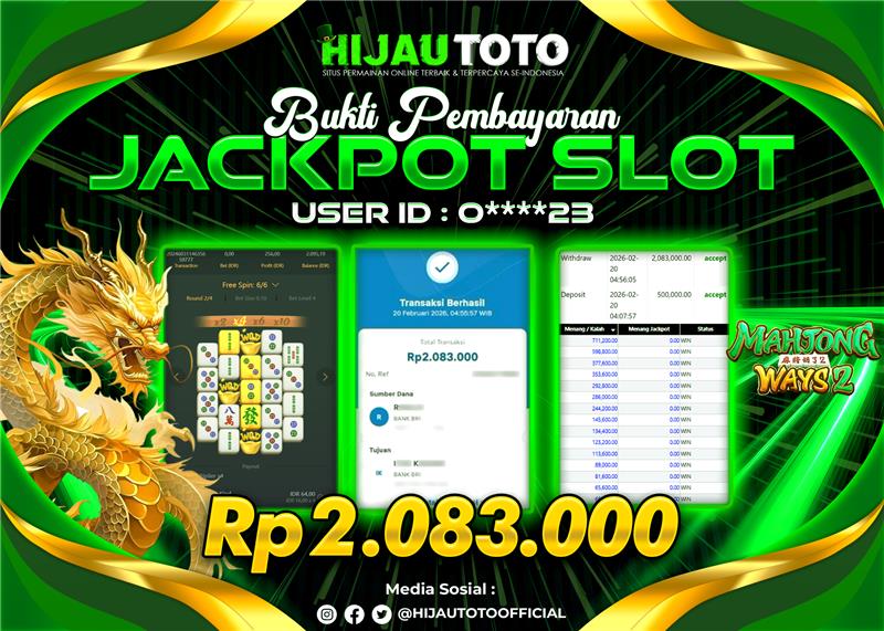Selamat datang di HIJAUTOTO, tempatnya seru-seruan dan cuan besar! Mulai main cukup dengan modal Rp5.000 aja, taruhan super murah dari Rp100 perak! Mau main slot yang penuh warna? Atau togel dari 20 pasaran paling hits? Atau mungkin tembak ikan yang bikin deg-degan? Tenang, ada juga taruhan bola, sabung ayam, dan live casino yang bikin suasana makin hidup! Daftar sekarang dan dapetin bonus new member 100% langsung, biar modalmu makin tebal. Deposit gampang banget, bisa pakai QRIS, dan kalau butuh bantuan, customer service kita siap 24 jam nonstop. Jadi, tunggu apa lagi? Yuk, gabung dan bawa pulang kemenangannya cuma di HIJAUTOTO!