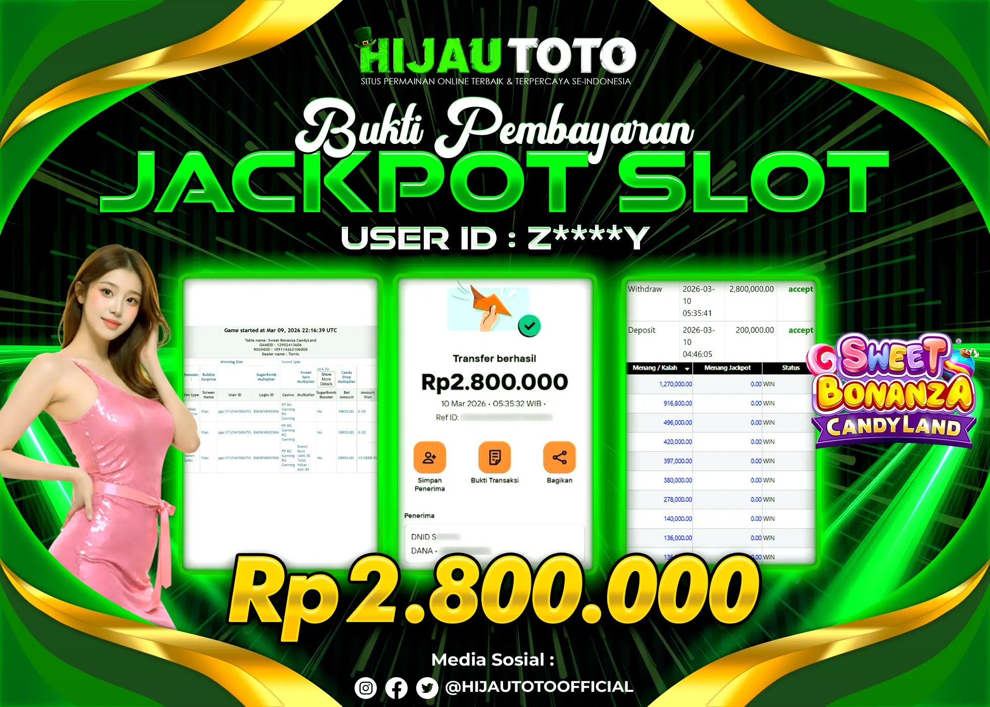 Selamat Kepada Member HIJAUTOTO Z****Y Telah Jackpot Di SLOT SWEET BONANZA CANDY LAND