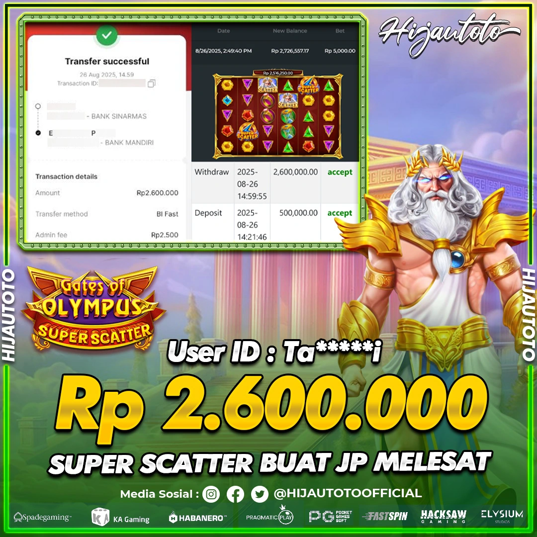 Selamat Kepada Member HIJAUTOTO TA*****I Telah Jackpot Di SLOT GATES OF OLYMPUS SUPER SCATTER