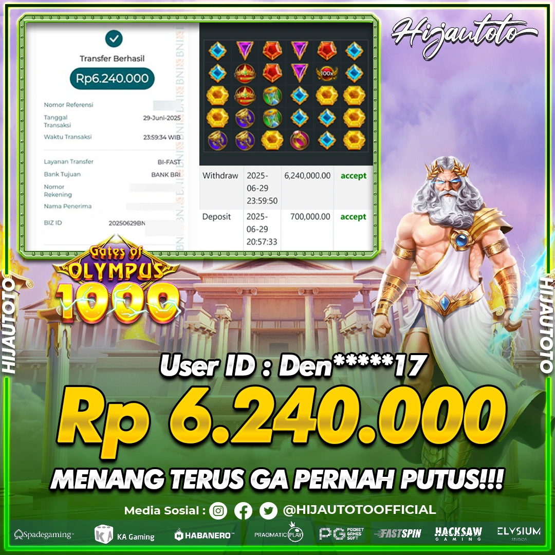 Selamat Kepada Member HIJAUTOTO DEN*****17 Telah Jackpot Di SLOT GATES OF OLYMPUS 1000