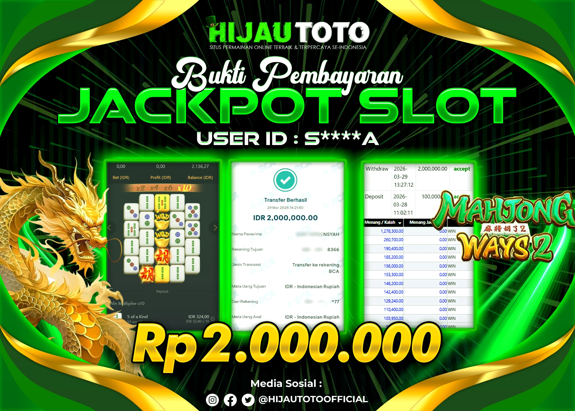 Karena berhasil memenangkan Rp.Rp.2.000.000 dari permainan seru SLOT MAHJONG WAYS di HIJAUTOTO! πŸ’°πŸ’Έ