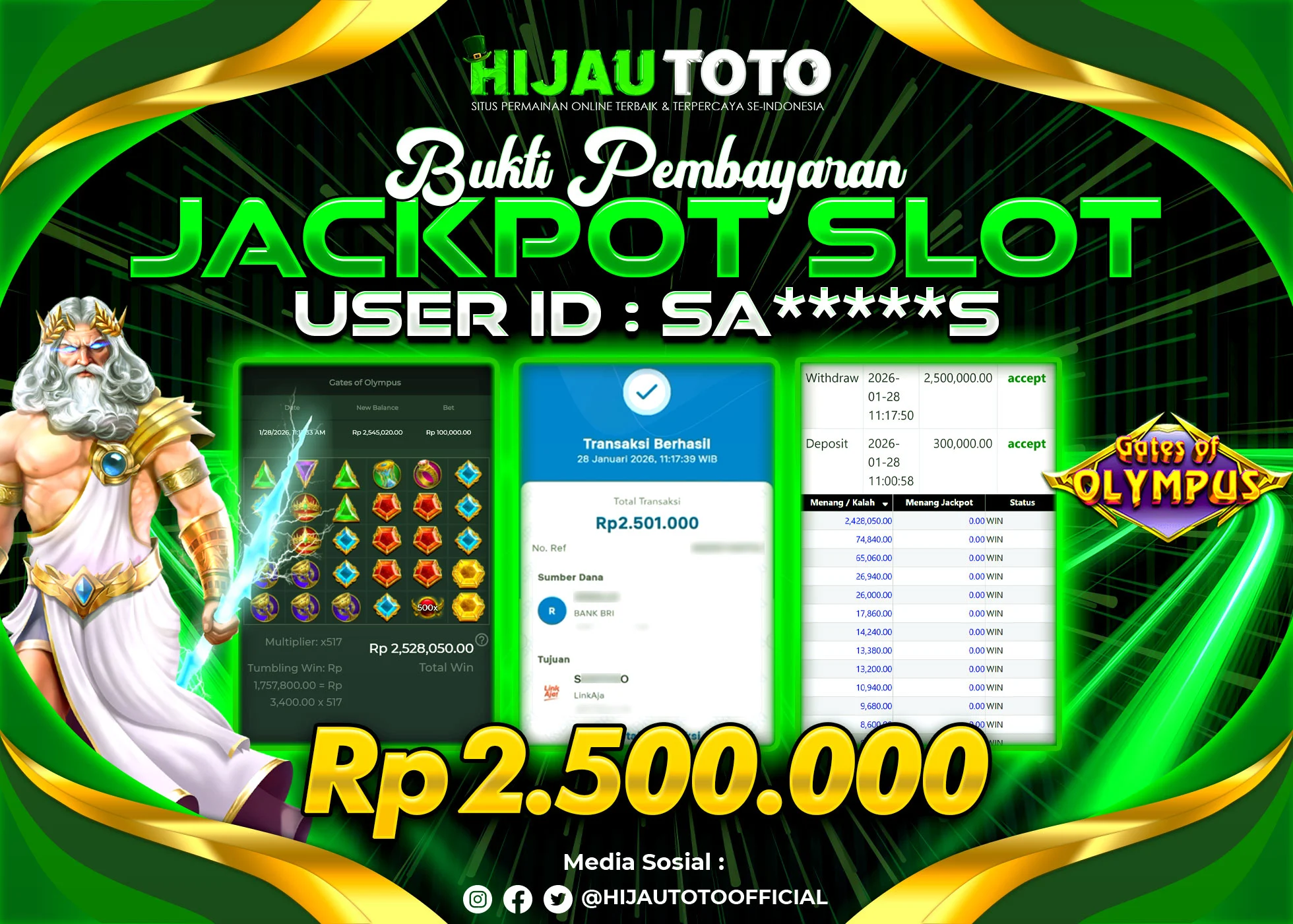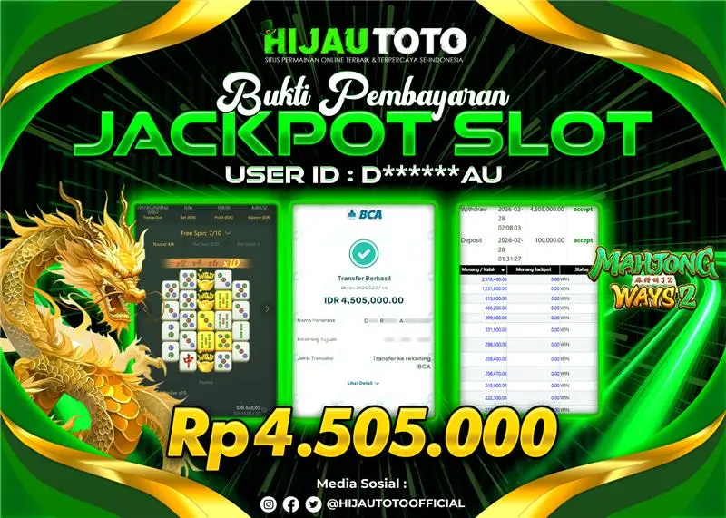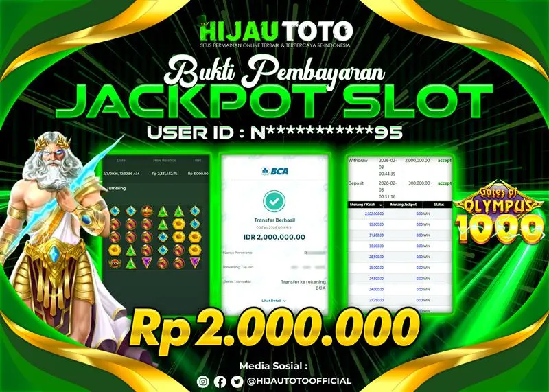 Selamat datang di HIJAUTOTO, tempatnya seru-seruan dan cuan besar! Mulai main cukup dengan modal Rp5.000 aja, taruhan super murah dari Rp100 perak! Mau main slot yang penuh warna? Atau togel dari 20 pasaran paling hits? Atau mungkin tembak ikan yang bikin deg-degan? Tenang, ada juga taruhan bola, sabung ayam, dan live casino yang bikin suasana makin hidup! Daftar sekarang dan dapetin bonus new member 100% langsung, biar modalmu makin tebal. Deposit gampang banget, bisa pakai QRIS, dan kalau butuh bantuan, customer service kita siap 24 jam nonstop. Jadi, tunggu apa lagi? Yuk, gabung dan bawa pulang kemenangannya cuma di HIJAUTOTO!